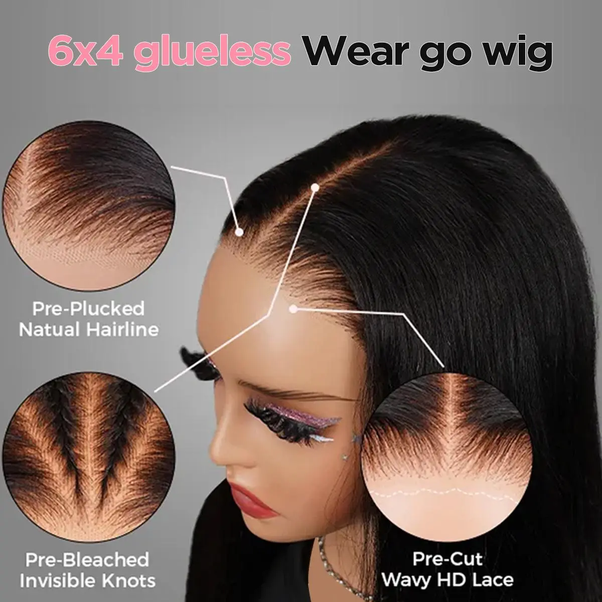 This glueless HD lace wig is absolutely beautiful! The hair is very soft, silky, and true to length. The HD lace blends perfectly with my skin and looks very natural. The 6×4 lace gives a nice deep part, and the straight texture is smooth with no tangling or shedding