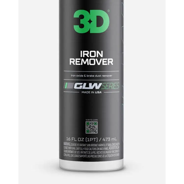 The 3D GLW Series Iron Remover is a powerful and effective solution for car enthusiasts, DIYers, and professional detailers who want to maintain the appearance and protection of their vehicles. This iron remover is part of the 3D GLW Series, which is designed to provide the ultimate in protection and enhancement for car care. The 3D GLW Series Iron Remover is specifically designed to decontaminate paint and wheels by loosening up embedded iron oxide particles, fallout, brake dust and more.