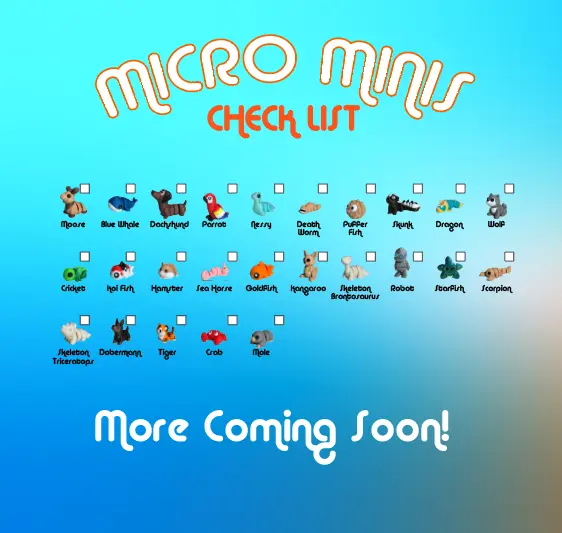 Micro Minis are tiny, adorable animal figures that are weird, whimsical, and totally irresistible. Perfect for collectors, fidgeters, and anyone obsessed with miniature items. Each figure is approximately the size of a quarter. Over 100+ unique animal minis to discover. Includes characters like Alien, Bigfoot, Dragon, Cloudy, and more!
