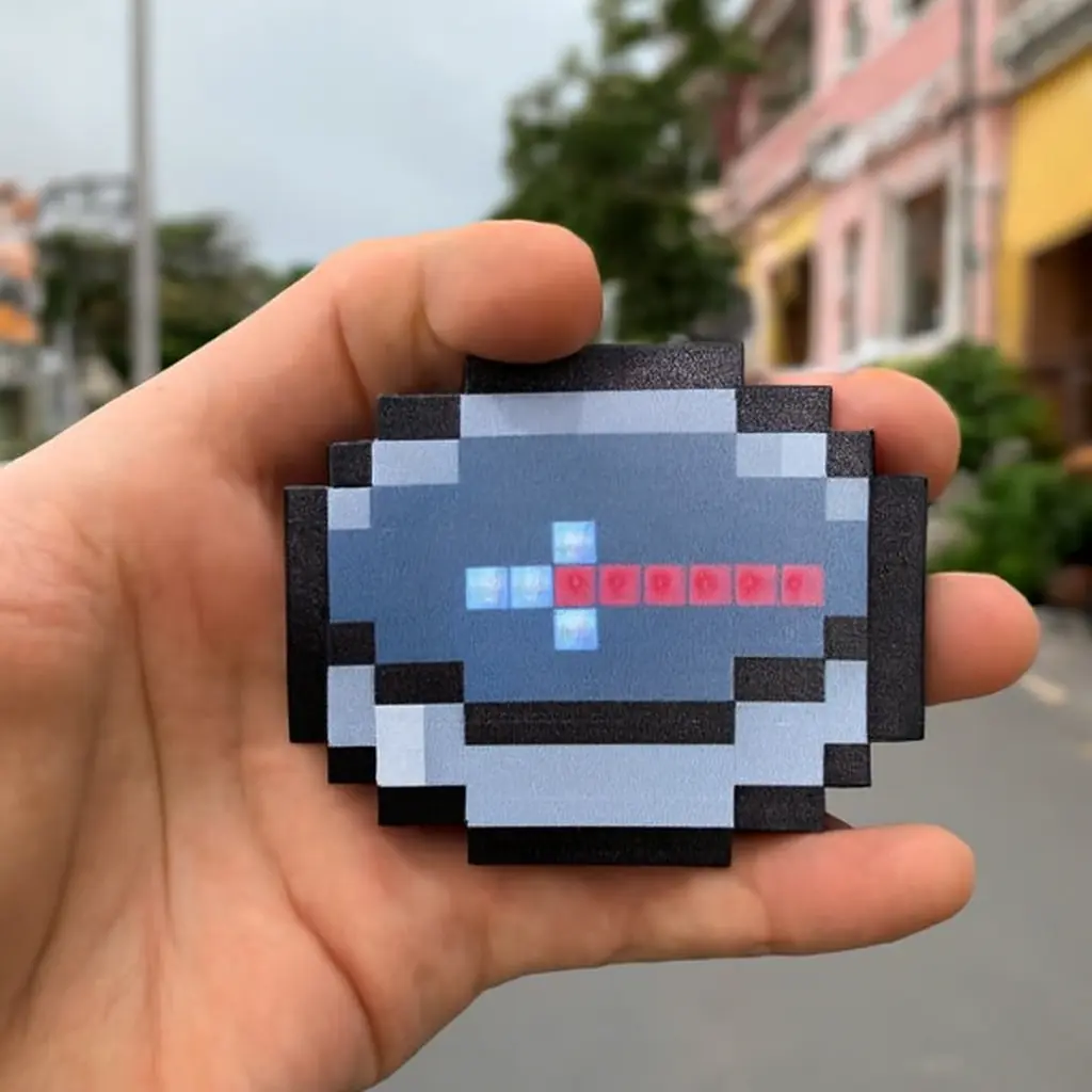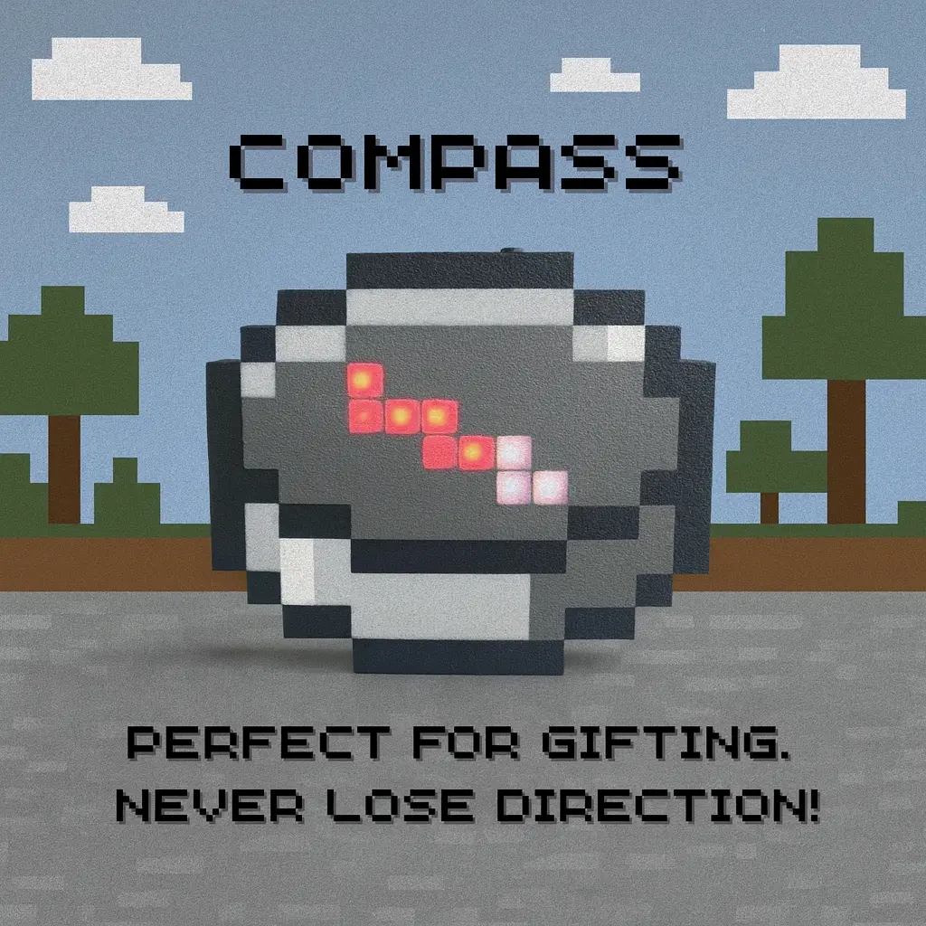 3D Printed Pixel Compass Keychain, Key Chain Light, LED Compass - Auto-Sync Pixel Navigator, Pixel Art Mc Game Peripheral Desktop Ornament, LED RPG Prop for Gamers, Cute Cartoon Accessory, Perfect Gift Idea