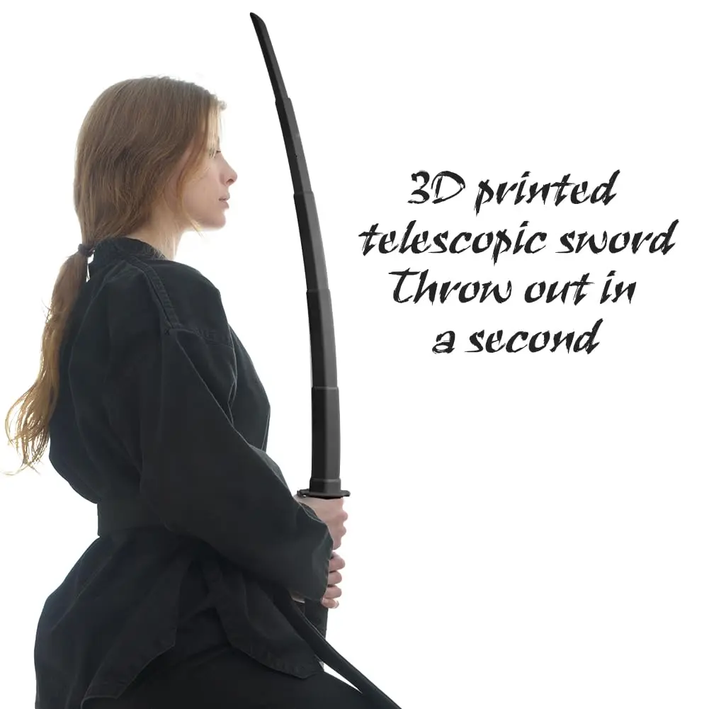 5. 3D Printed Gravity Retractable Samurai Sword Model Toys, Plastic 3D Print Retractable Sword, Telescopic Katana Toy, Creative Decompression Super Healing Tricky Toy, 2pcs (Color : Black+Pink)