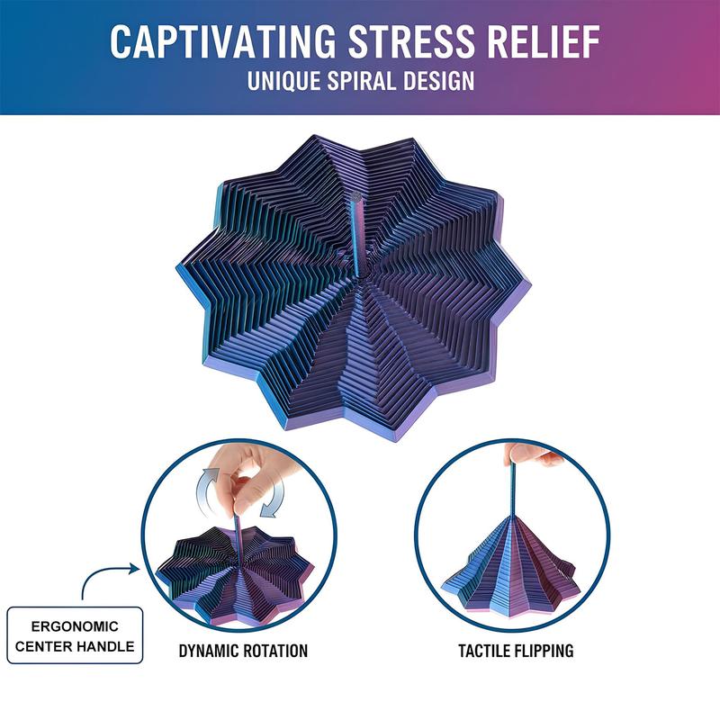 ·Stress Relief Sensory Whirling Spiral: This 3D printed expanded sensory fidget star is designed for stress relief. It features a whirling spiral with a handle, making it a perfect sensory toy. 🔄