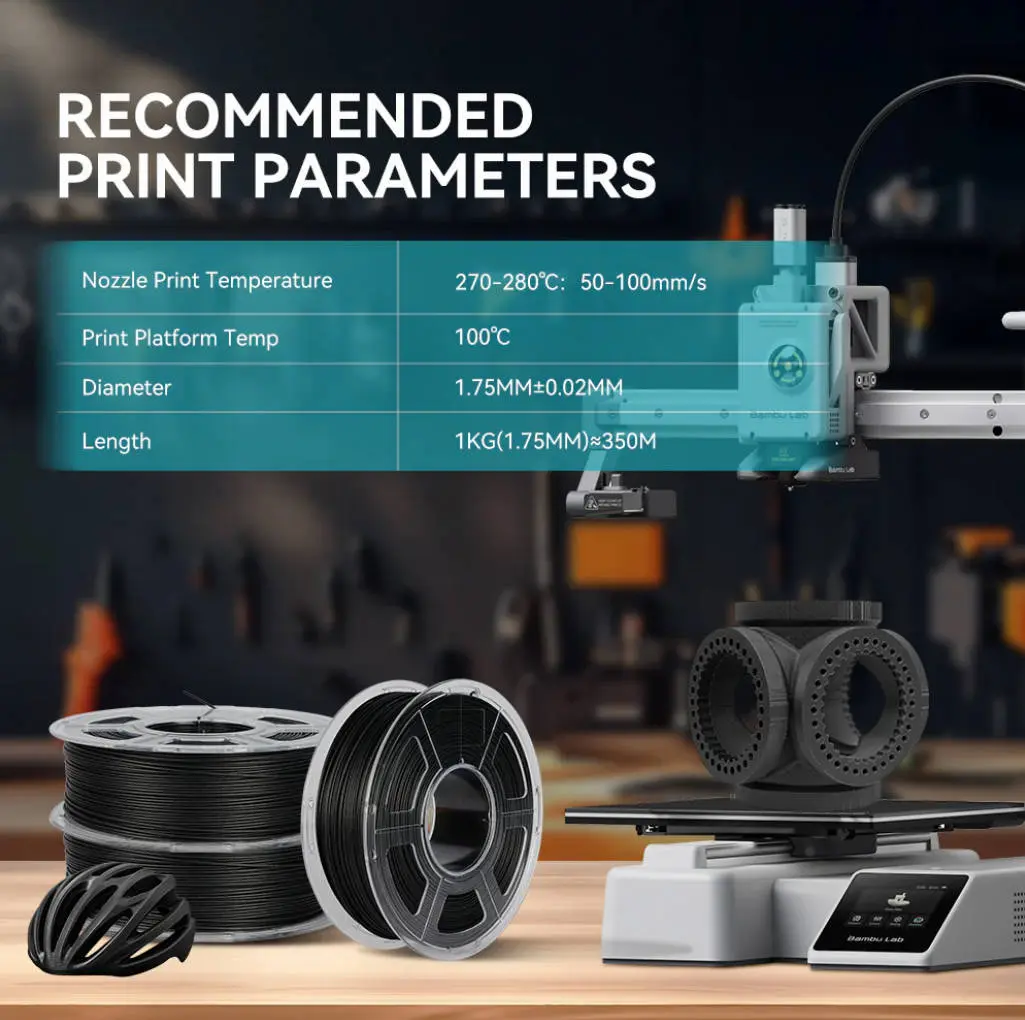 2. Use an abrasion-resistant nozzle (e.g., hardened steel) to prevent wear caused by the filament's carbon fiber content.