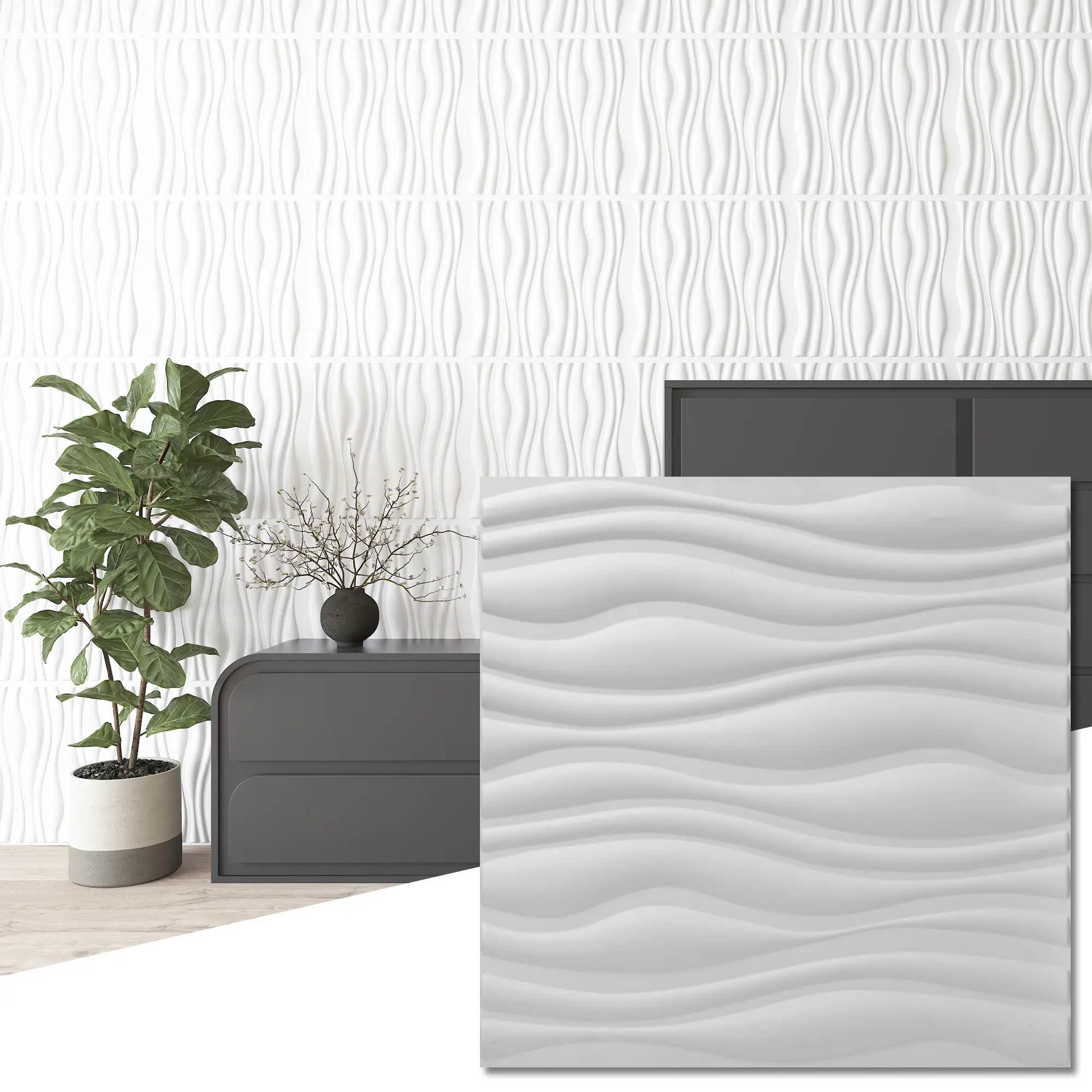 ·Stylish & Modern Design – Featuring a sleek 3D wave pattern, these panels add depth, texture, and a contemporary touch to any space. Whether you're looking for a statement wall or a subtle upgrade, these panels bring a high-end look with minimal effort.