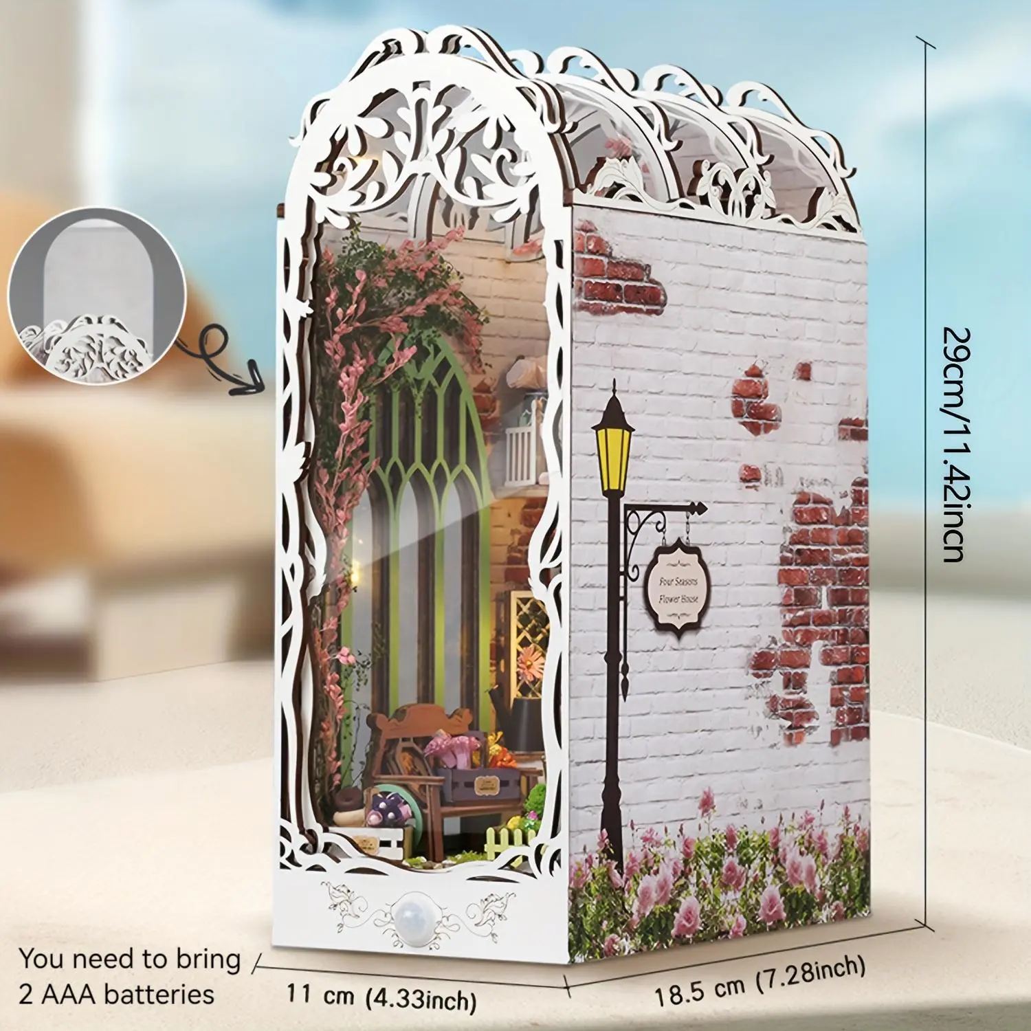 I doubt the reviews except for negative are real. There are multiple pages of “paper”, not punch out or stickers! You have to cut the pics which should be stickers out! The wood pieces do not fit together! You have to glue them. This is the worst book nook so far! Really want to just trash it!