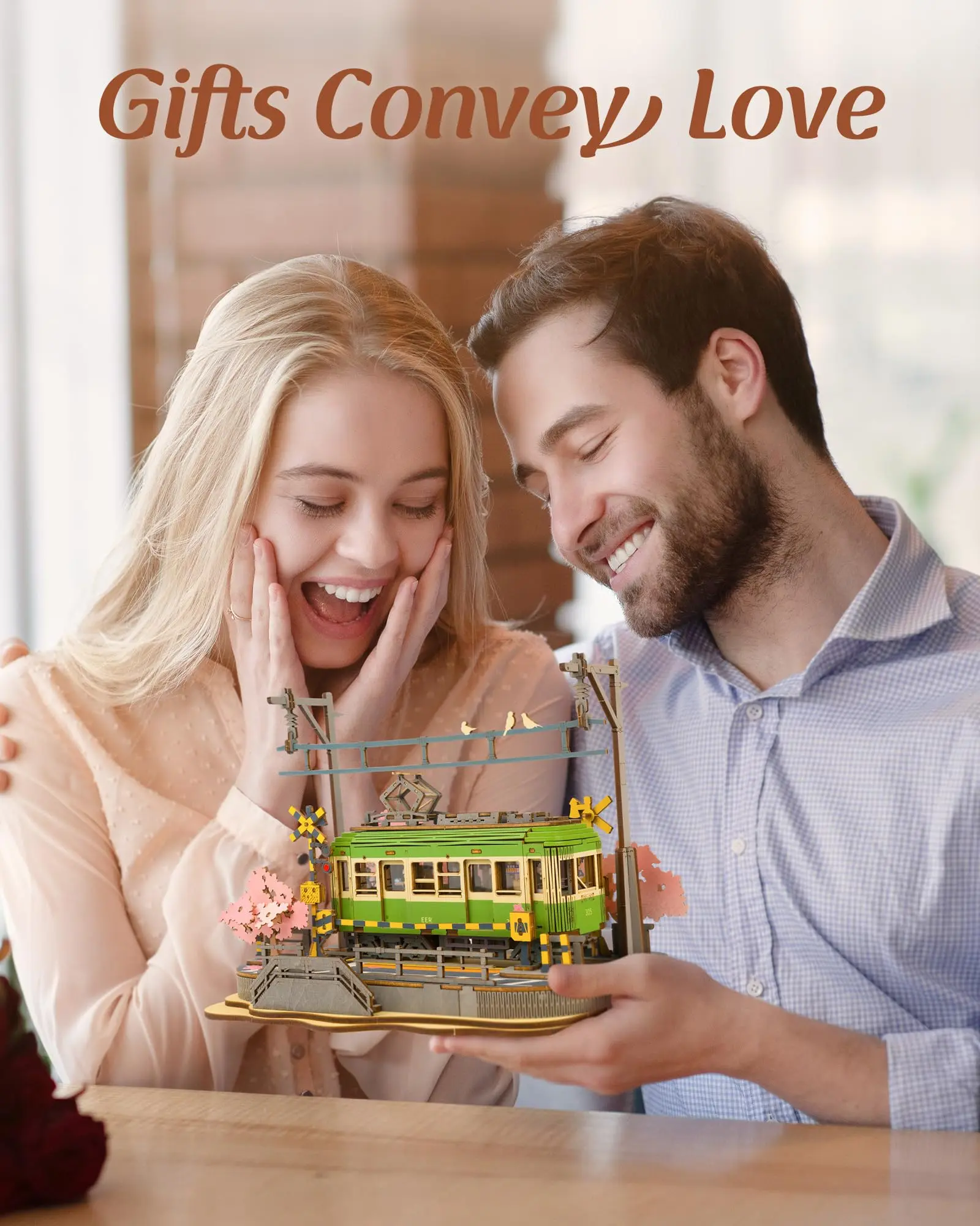 5. Rolife Sakura Journey 3D Wooden Puzzle TGS02 3D Wooden Puzzle for Adults, Sakura Journey Tram DIY Model building Kits with LED Lights, Creative Kids Craft Hobby Gift and Brain Teaser Home Decor Assembly Toy