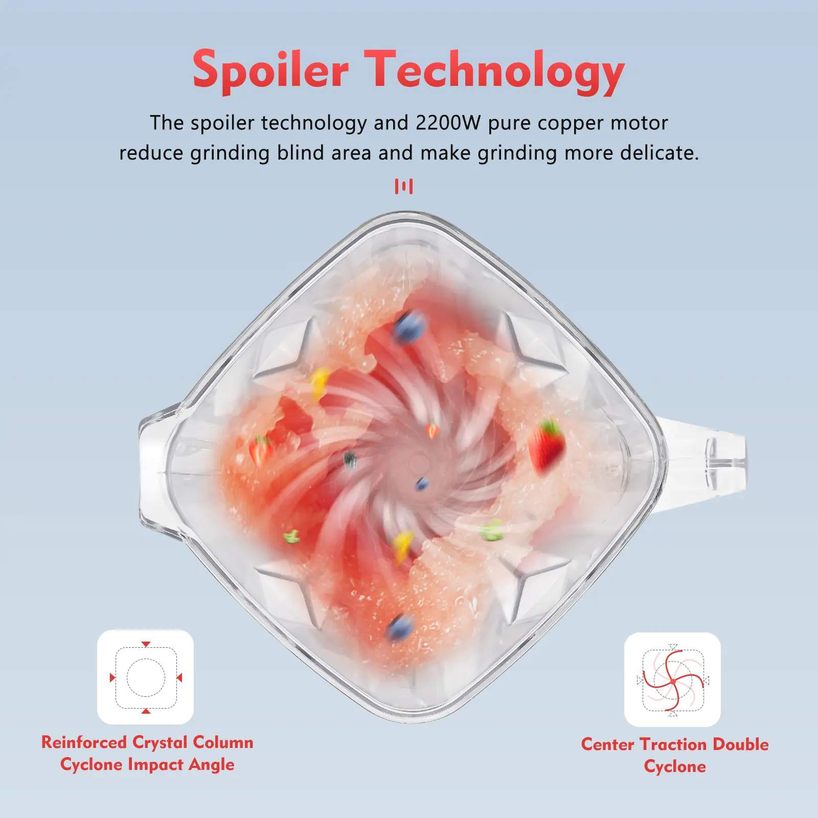 ·Ultra Power: 2200W (3HP peak) motor + 24000–26000 RPM — crushes ice in 15–25 seconds!