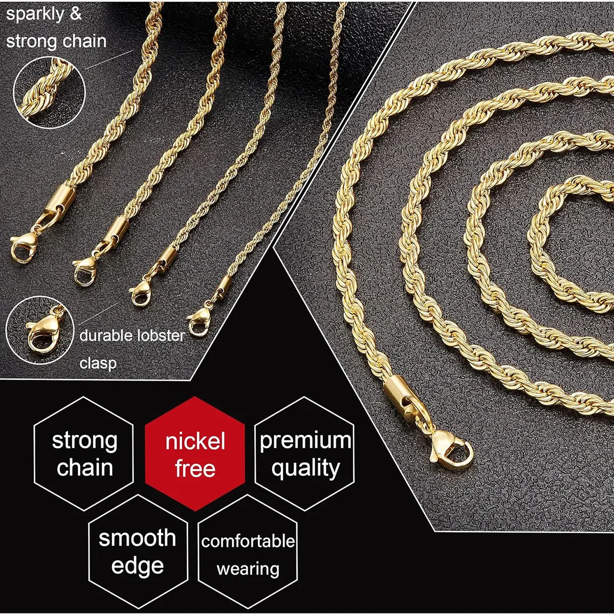 Very nice, affordable chain. It’s a good size and goes with many outfits!