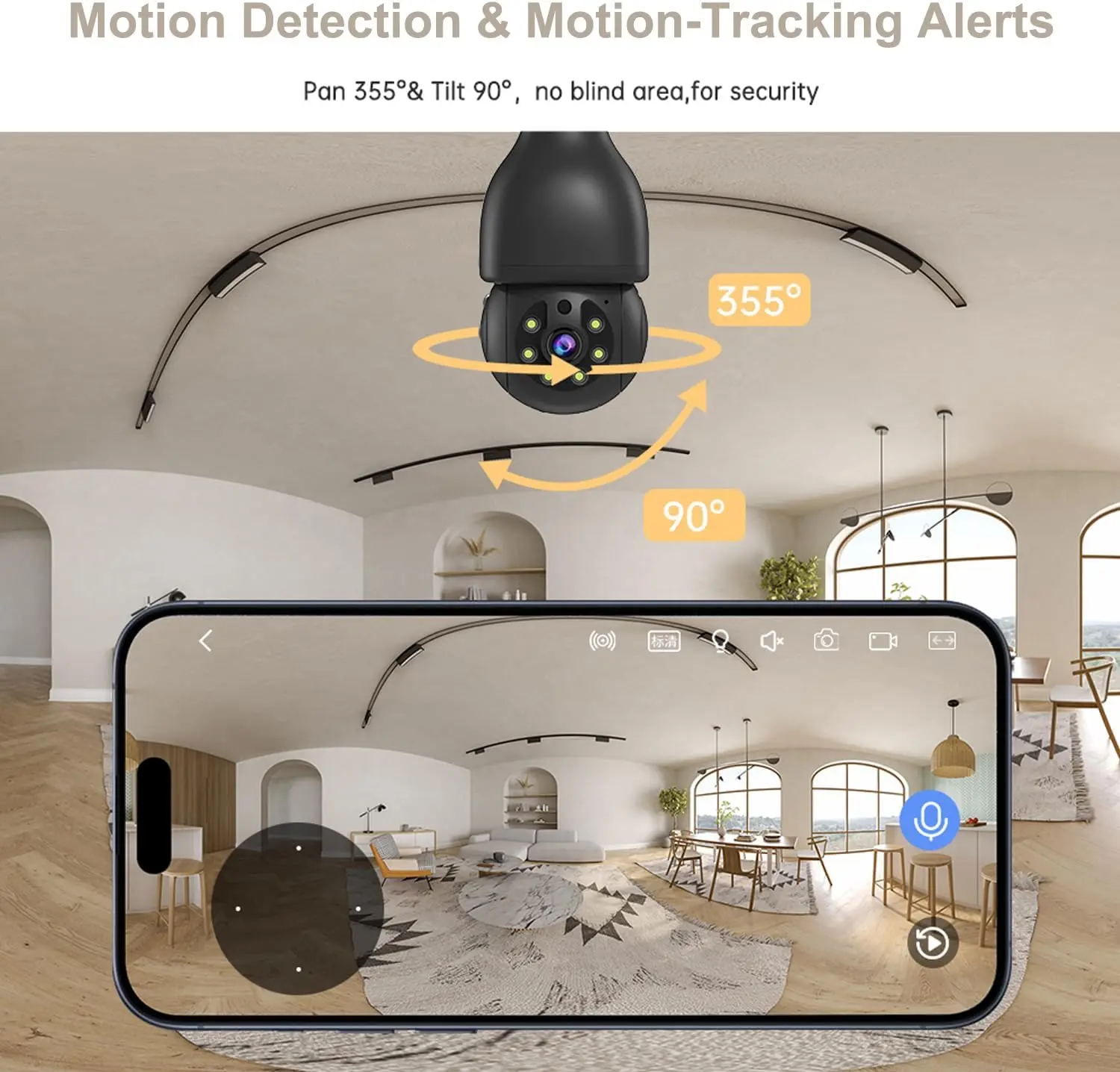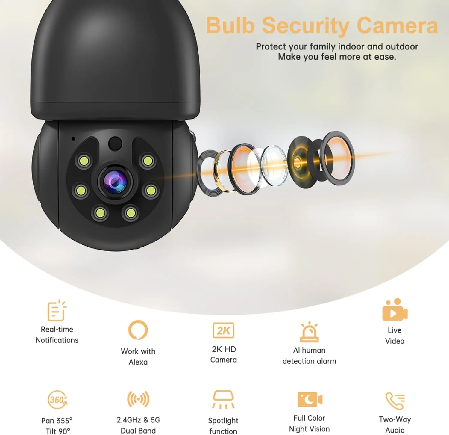 3MP Dual-Band Light Bulb Camera with Extension Adapter, Motion Detection, Two-Way Audio, App Alerts