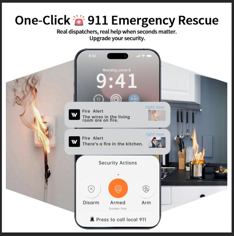 ·instant 911 Emergency Calling: Feel safer with one-touch emergency response _ directly connects to local Police when needed.