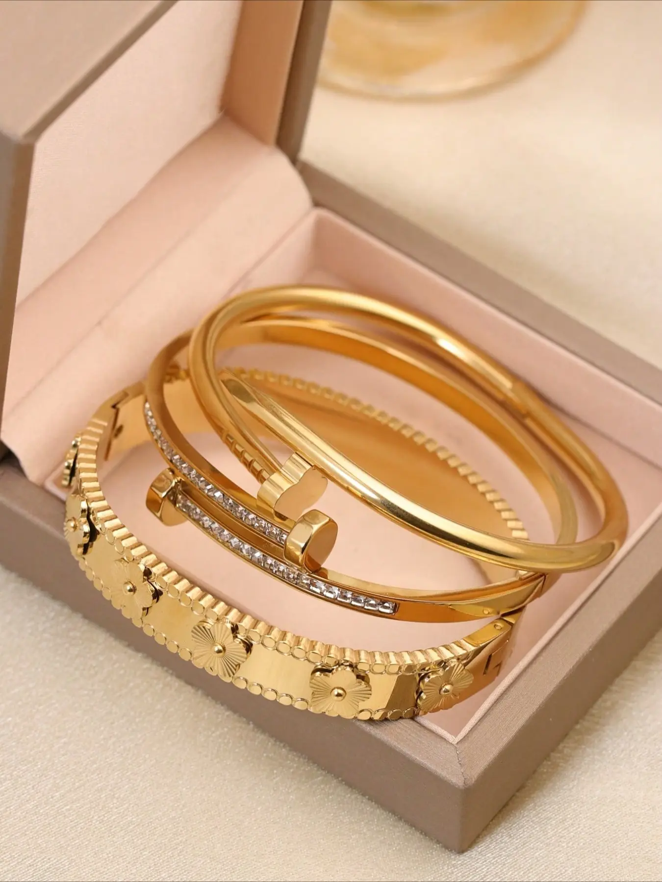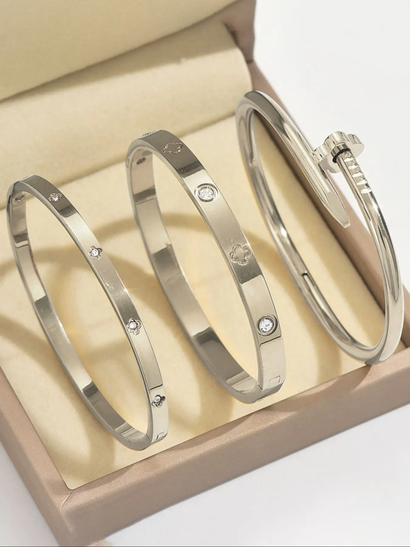 Me estuve ordenando estas 3 pulseras finas gruesas acero bañado hermosas me encantan no despintan y a un súper precio las ameee