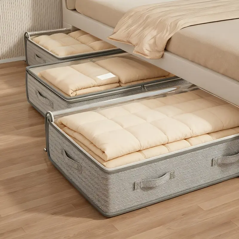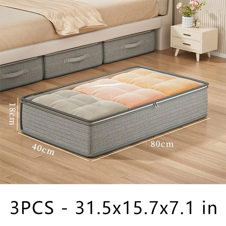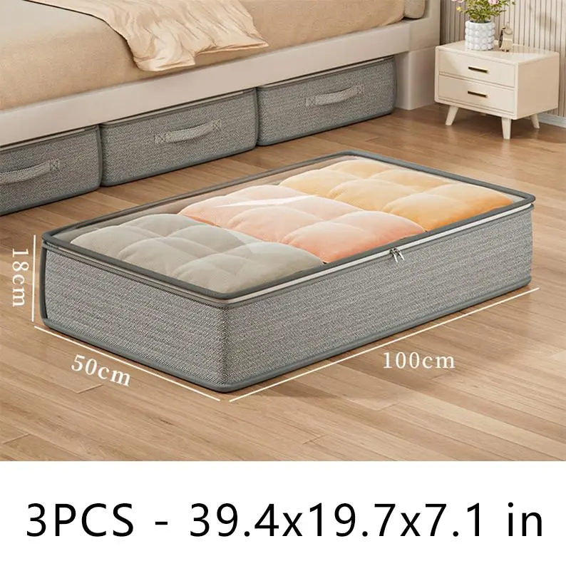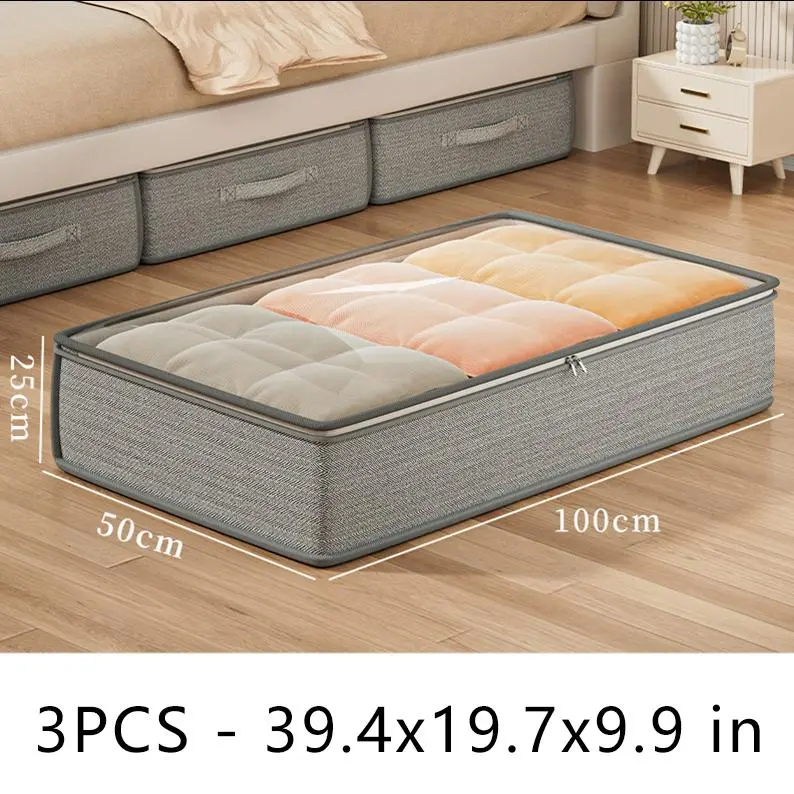 3pcs Large Under-Bed Storage Boxes with Handles, Stackable Durable Non-Woven Fabric Clothes Organizer Bins for Space-Saving Multi-Purpose Solution, Minimalist Design & Reinforced Grips – Ideal for Bedroom Seasonal Storage and Wardrobe Organization