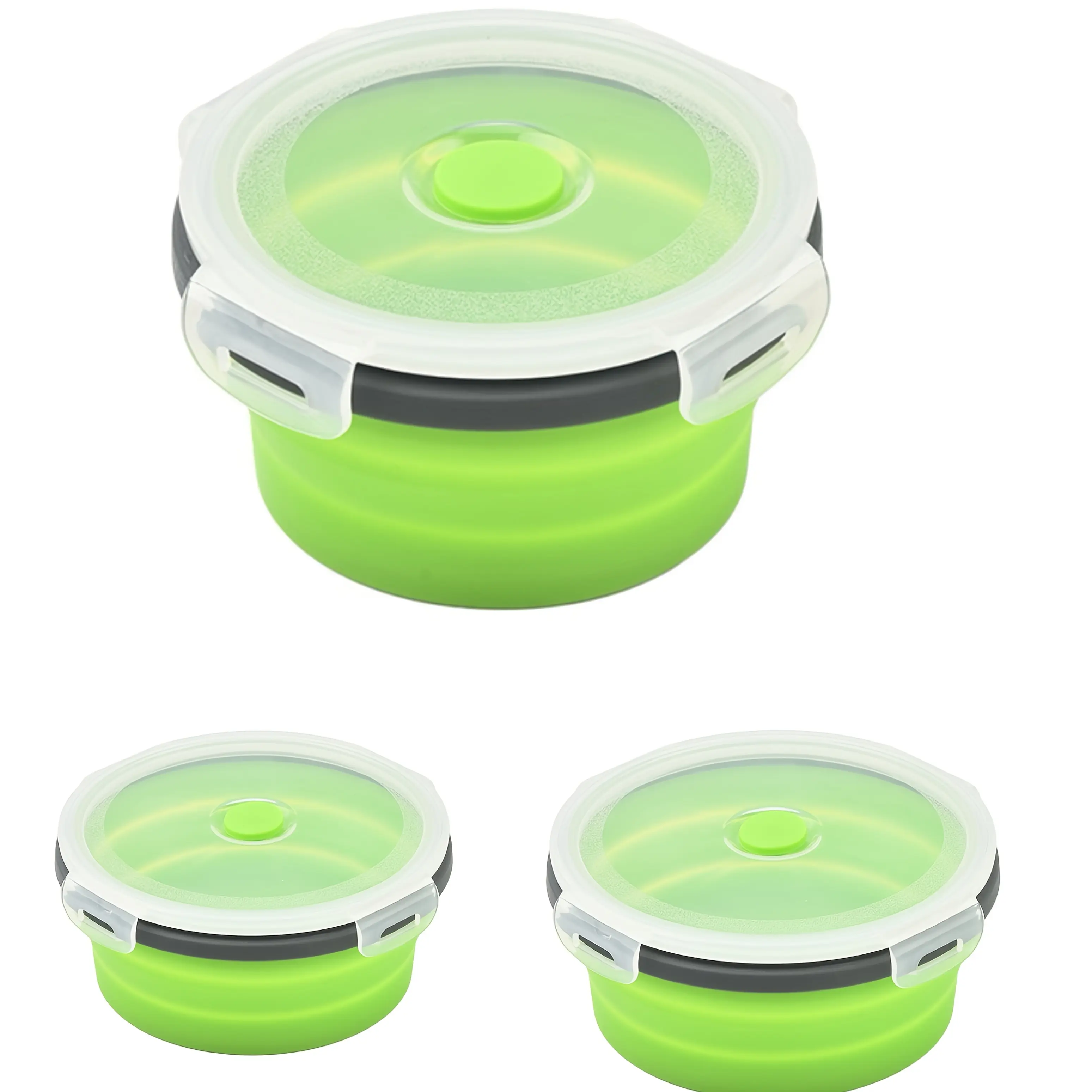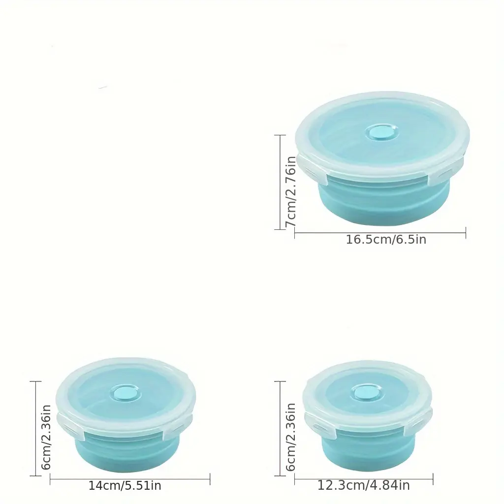 3pcs Round Silicone Meal Prep Containers Set - Stackable, Microwave & Refrigerator Safe, Leak-Proof Lids, Perfect for Camping, Picnics, and Home Use, Includes Noodles, Eggs, and Fruit