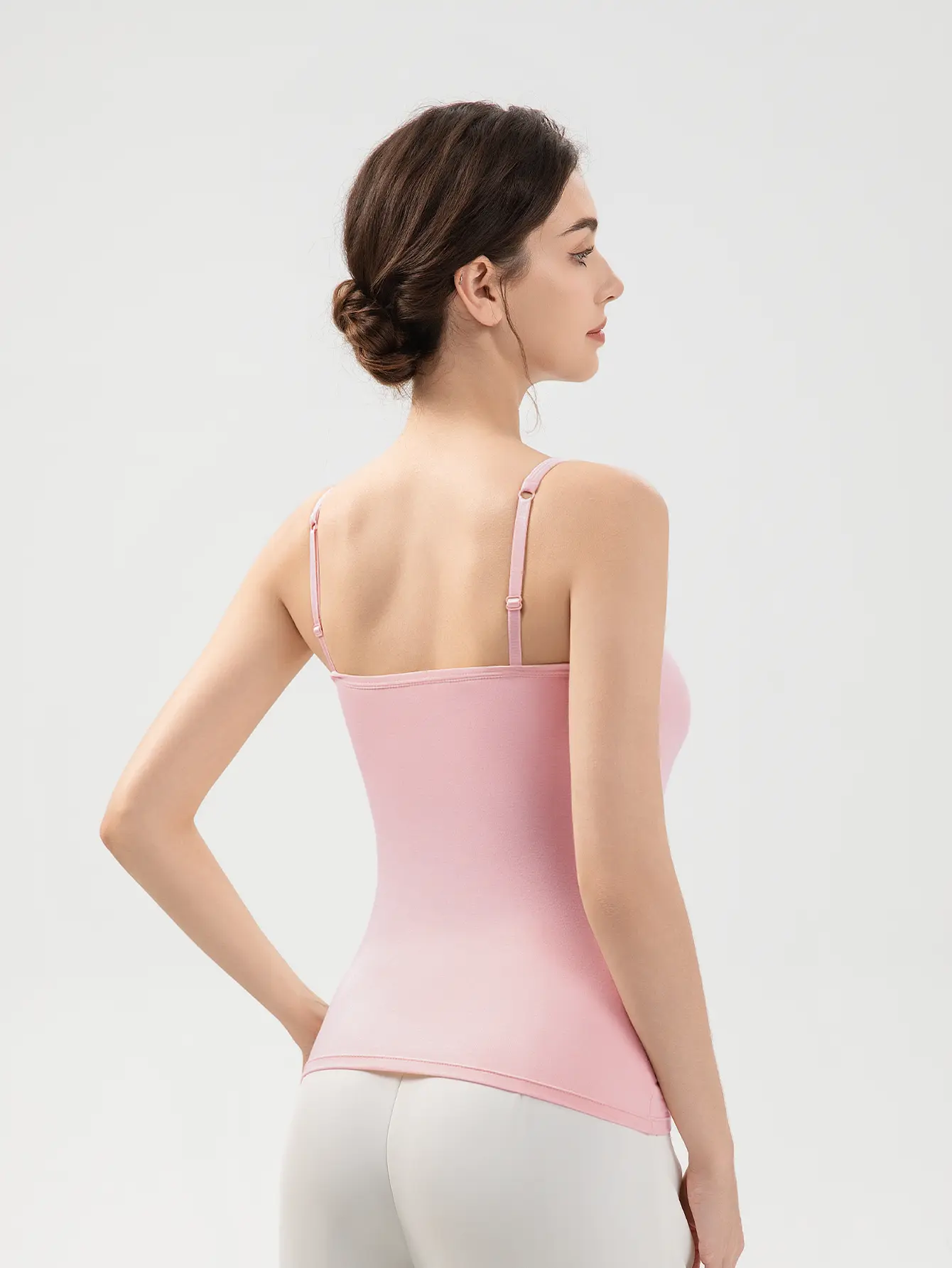 Elevate your summer wardrobe with these seamless built-in pads camisoles. Available in black, pink, and apricot, they offer a versatile look. Ideal for yoga, beach, and vacation, these padded tank tops ensure comfort. The adjustable layered straps provide a customized fit. Stay cool and stylish with these breathable basic minimalist tops.