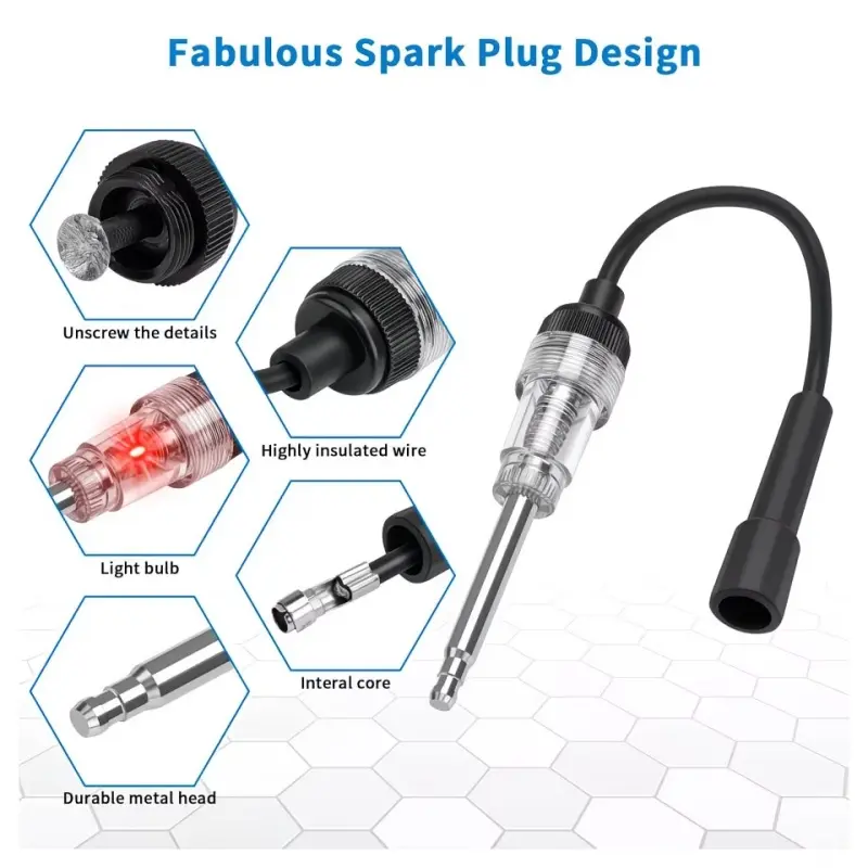 Fabulous Materials : The ignition coil spark plug tester is made from high-quality high-temperature-resistant wire, the transparent shell is designed for clear display, and the inner bulb can be used for many years. Anti-rust and corrosion-resistant, easy to store and prolong service life. Dimensions: 3" (7.6cm) Nickel Plated Shaft; 7" (17.8cm) Rubber Straight Boot and Cable; 1" (2.5cm) Bulb. It's portable that apply for checking hard-to-reach areas for sparks