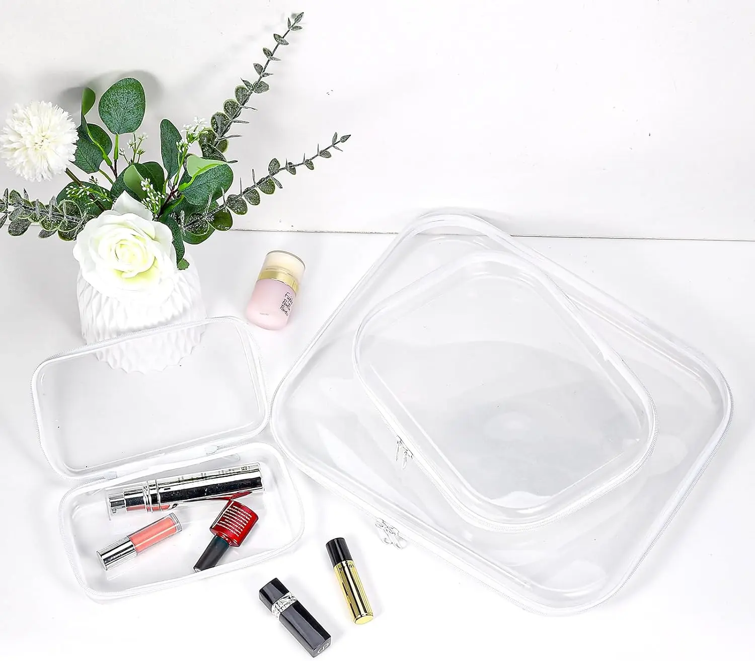 ·【Clean Design with Strong Zipper Closure】 The smooth, secure zipper ensures nothing spills or opens accidentally. Sleek and modern, this white set looks great in any travel bag or vanity drawer.