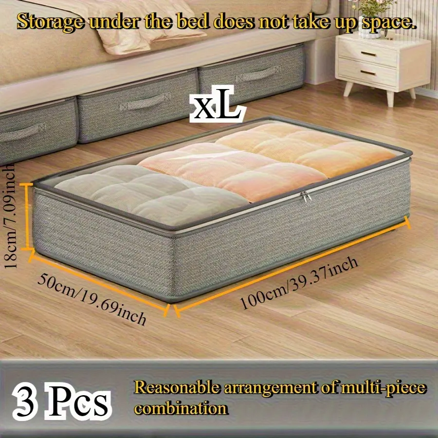 3pcs Under-Bed Storage Cabinet with Foldable Design, Multi-Purpose Organizer for Blankets, Dresses, Quilts, Pillows & Clothes – Space-Saving Solution for Labor Day, Under-Bed Storage Divided Compartments bedroom storage