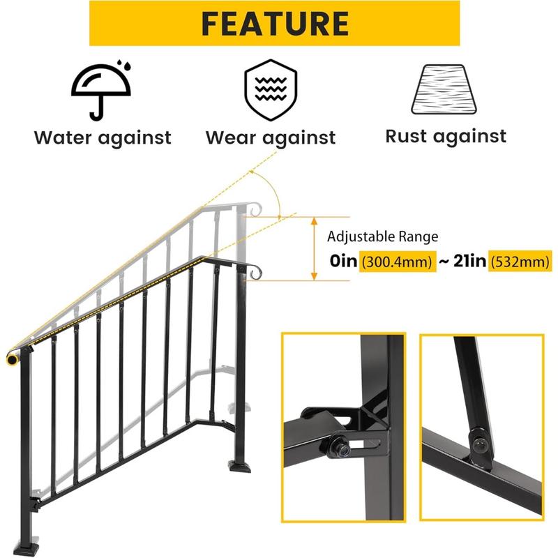 The step hand rail is made from premium steel, which is quite durable, wear-against and water-avoidance. The surface is treated with powder coated to avoid rust and offer you long-time use life