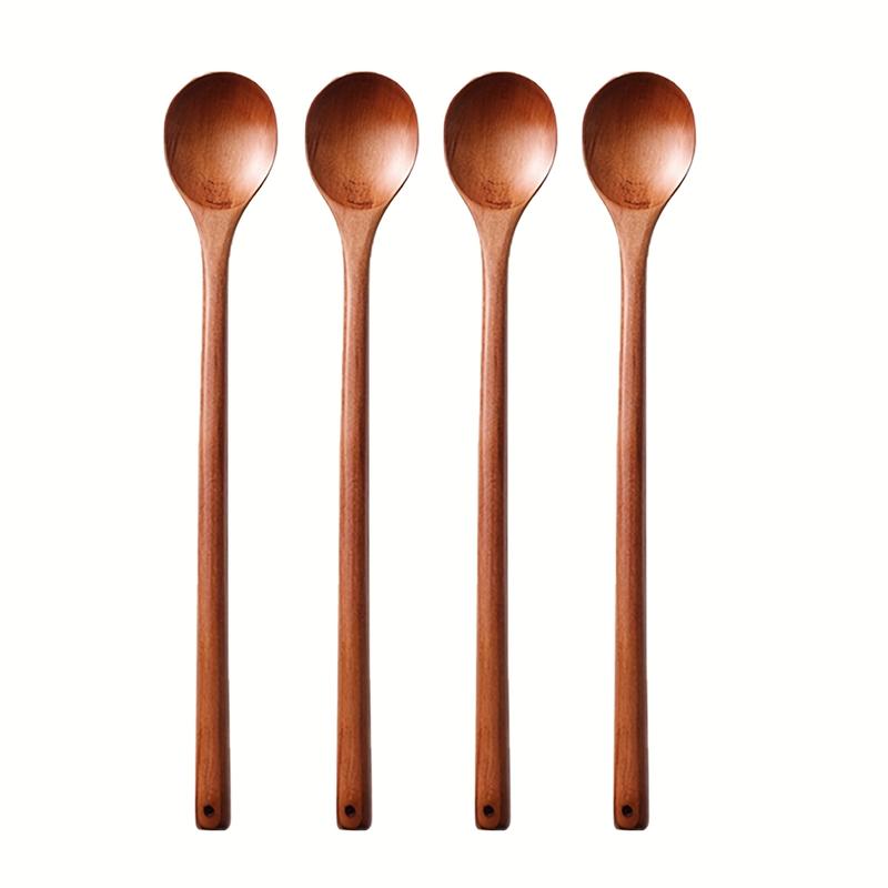 5. 4/6 Piece Long Wooden Cooking Spoons, Durable Stirring Tools, Dishwasher Safe, Ideal for All Pots, Home & Professional Kitchen, Kitchen Utensils Set