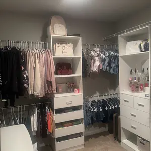 Maximize your space with this versatile wardrobe system, featuring 4 adjustable rods (26.4"-47") and spacious drawers for complete organization. With a flexible width (75''-115'') and 1000lb capacity, it adapts to any corner or walk-in closet. The removable shelves and anti-tip design ensure safety while storing coats, accessories, and more. Create your dream wardrobe in minutes!