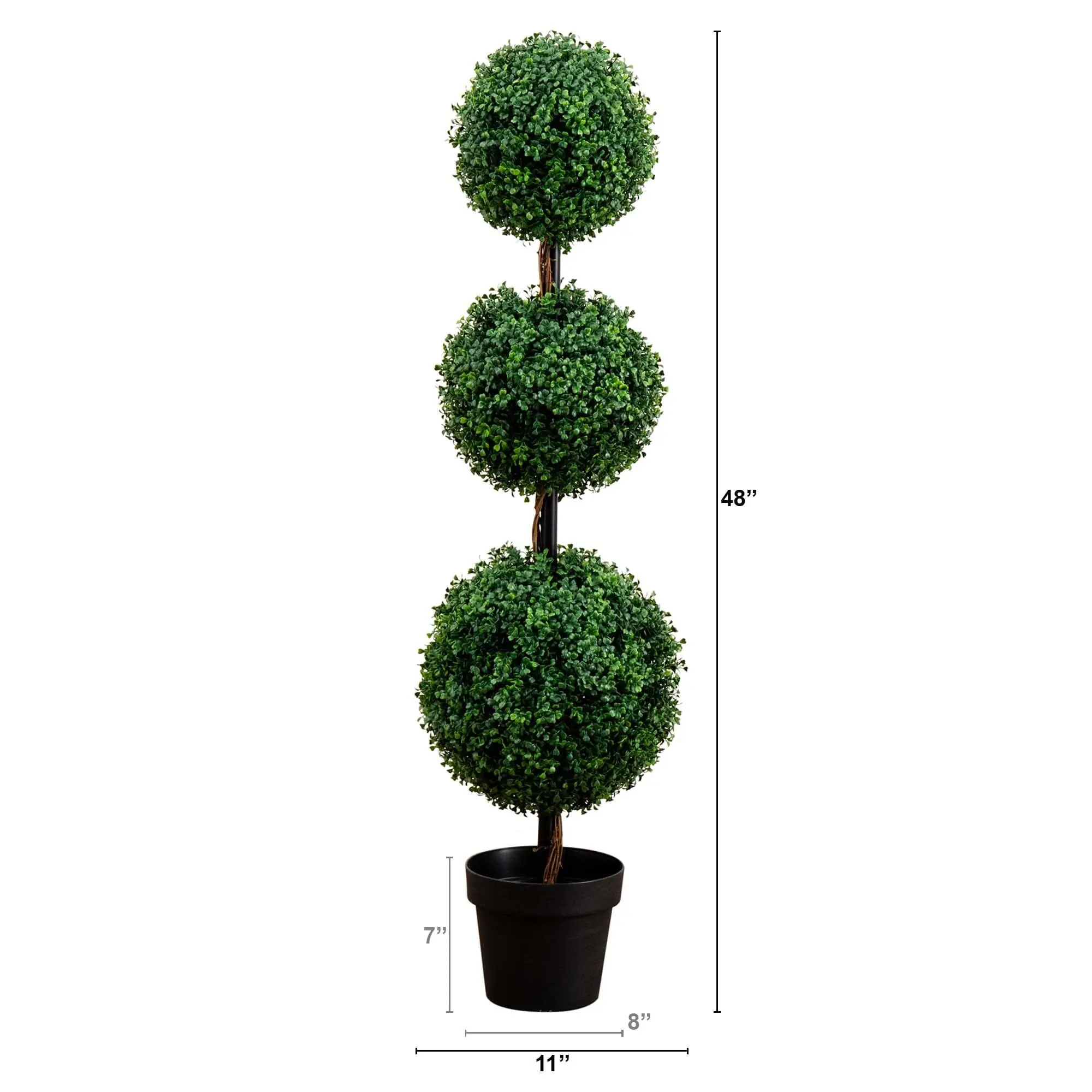 5. 4’ Artificial Triple Ball Boxwood Topiary Tree (Indoor/Outdoor)