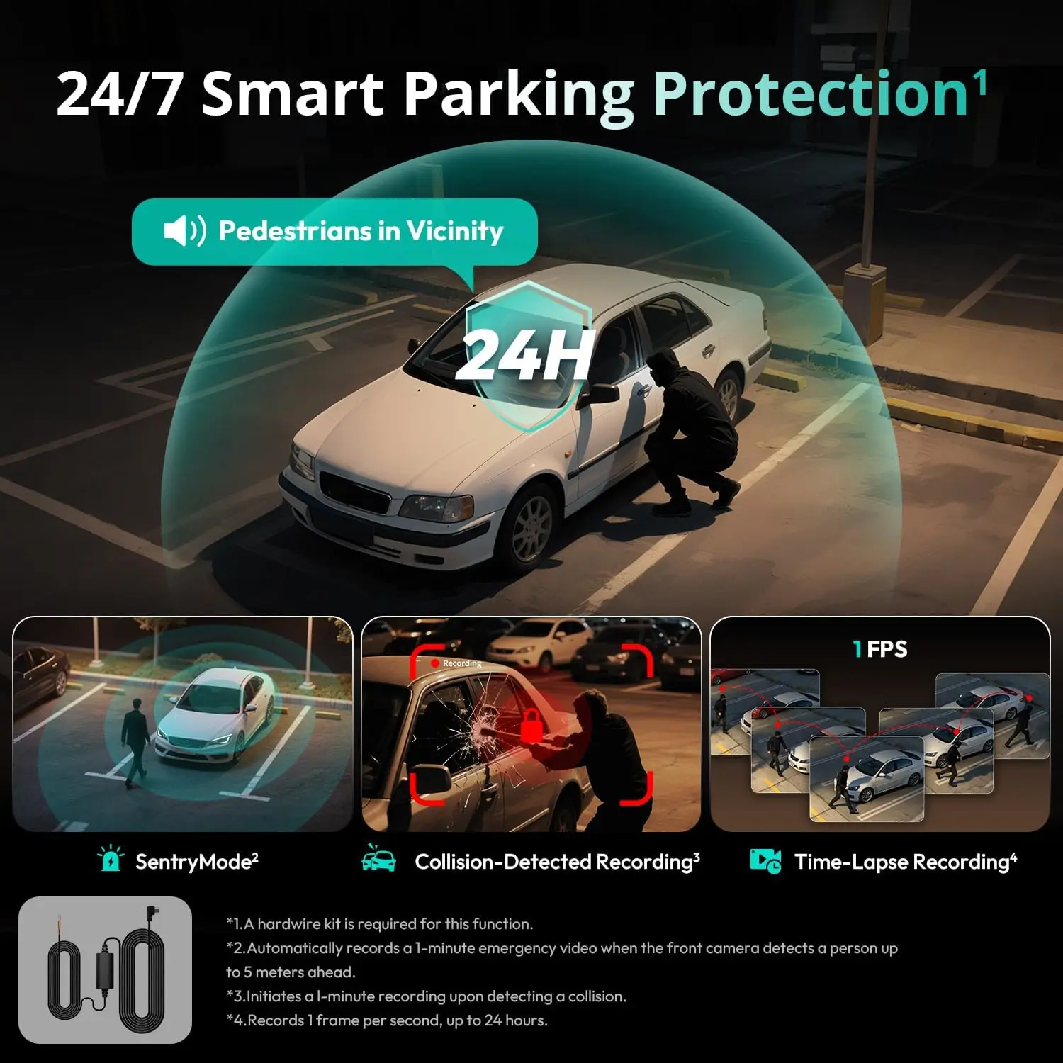 Great dash cam. Giving 4 stars because the kit I bought did not come with a short L shape USB power cord. It only comes with the long cord that plugs into cigarette outlet. It would be a 5 had they include the cord for optional power supply. The power plug design should be further apart.