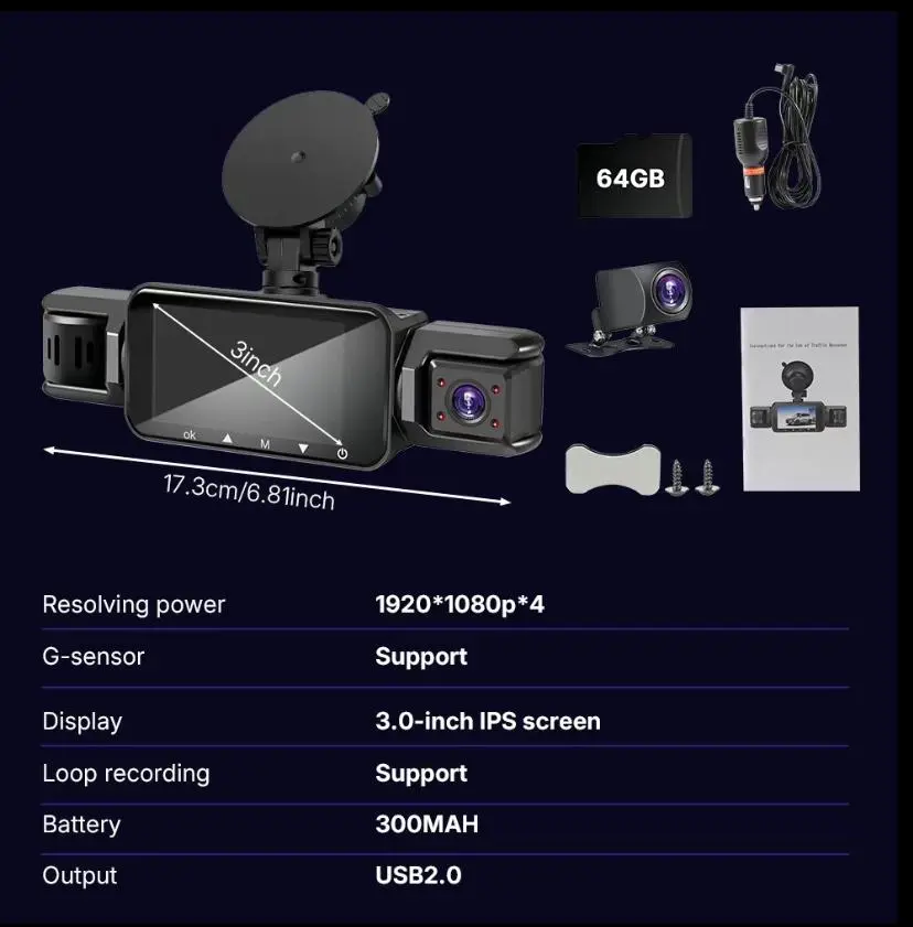 Store hours of footage with the included 64GB memory card. Loop recording ensures the oldest footage is overwritten by the newest, so you never run out of space.