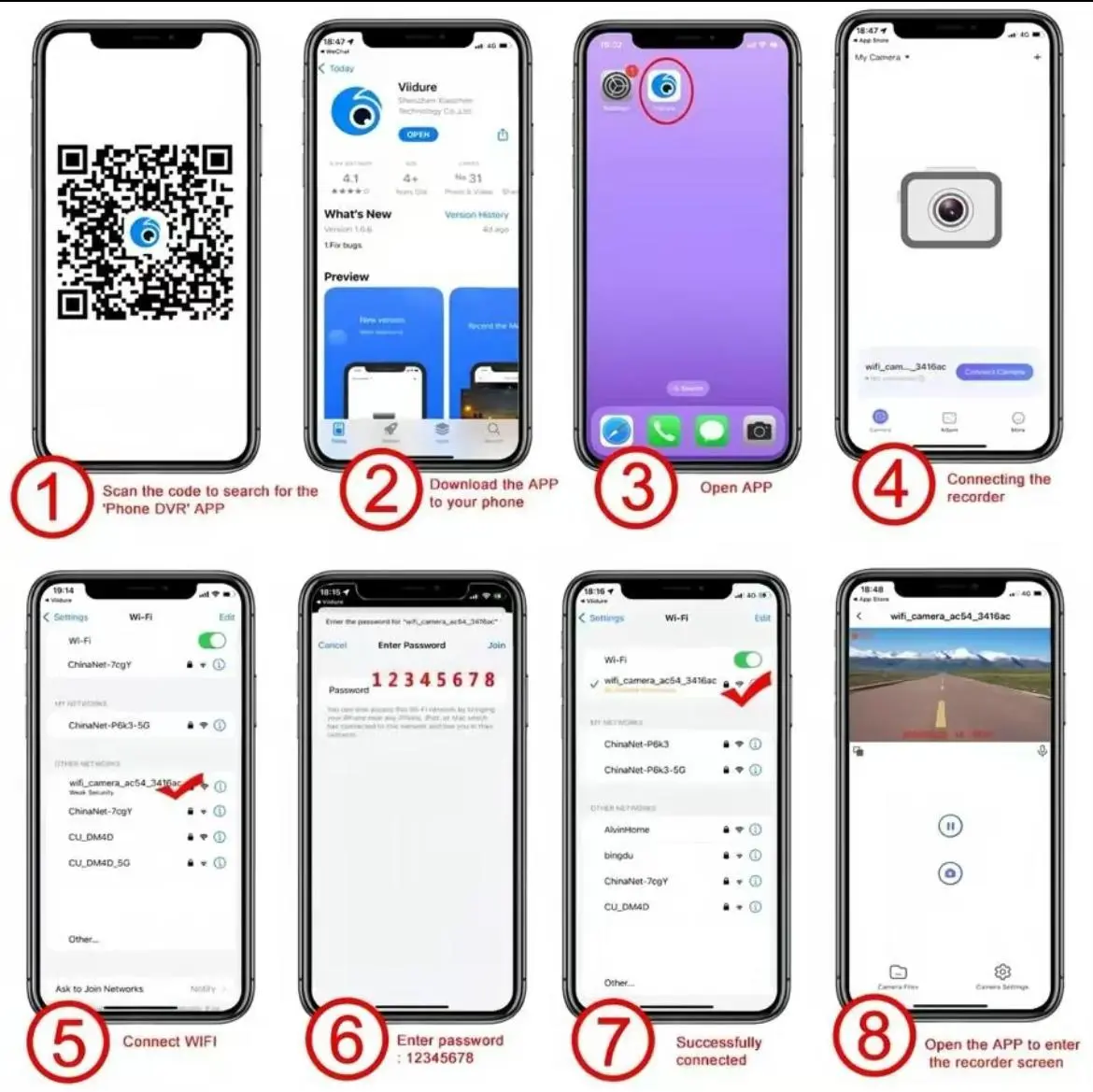 When using this product, you need to turn on the Wi-Fi setting first (it's off by default). Using the accompanying app, connect the dashcam to your smartphone via Wi-Fi. You can then conveniently control the camera, view recorded videos, and manage settings directly from your phone. Note that when viewing on your phone, the recording status will not be displayed on the product's screen; you can long-press the arrow to unlock and view the recording status on the product's screen.