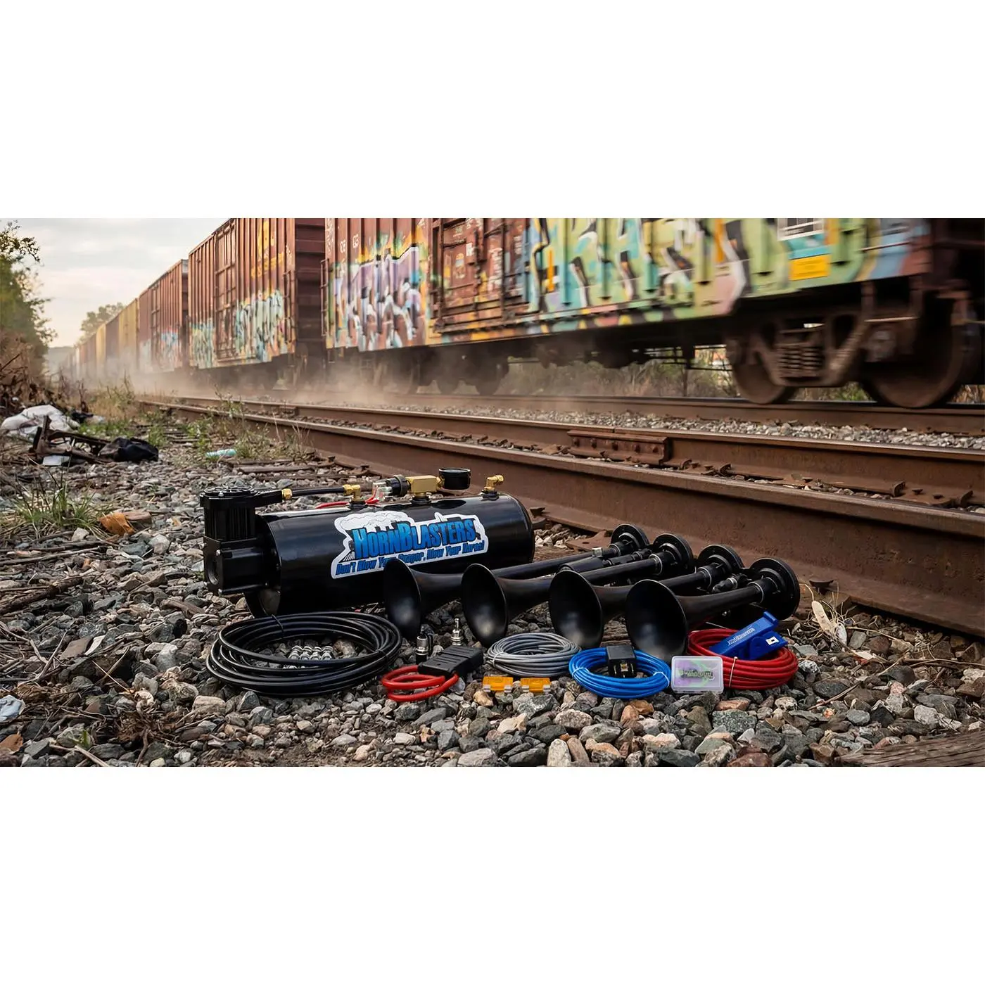 Get ready to grab attention with the deafening bellow of the HornBlasters Rage 4-Chime 3-Liter Air Horn Kit. Specifically designed for vehicle enthusiasts who crave the bone-rattling sound of an air horn, this kit comes complete with everything you need to get up and honking in no time!
