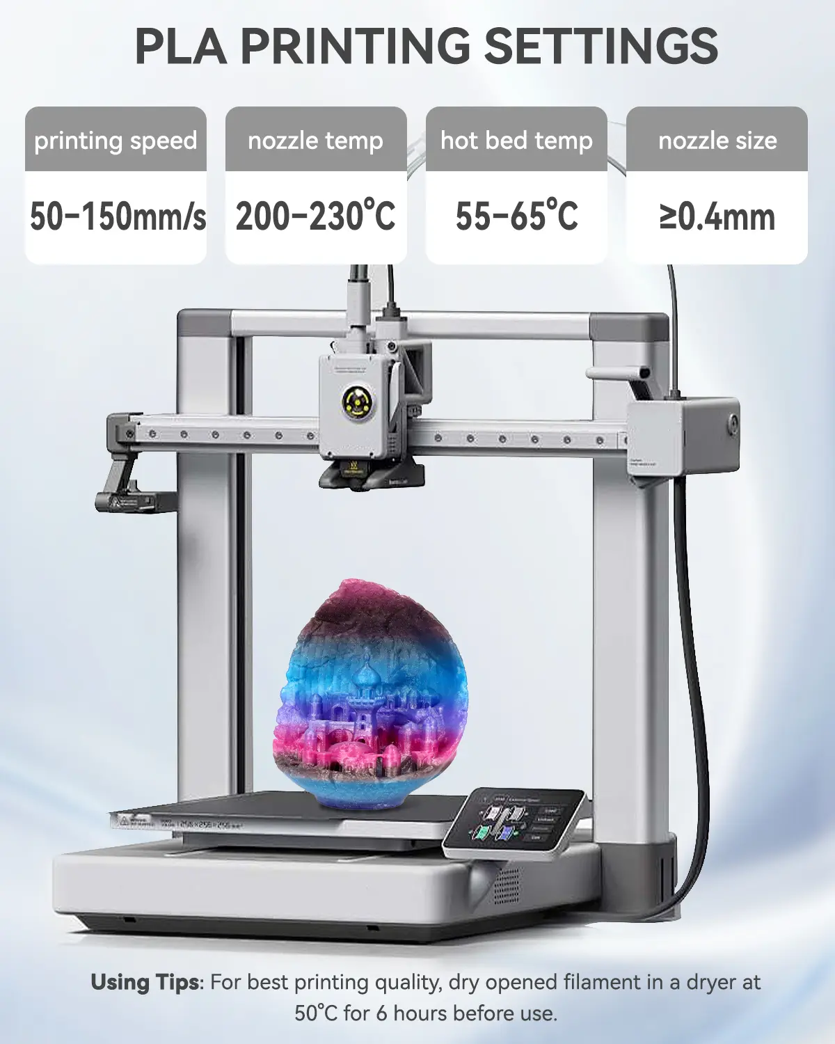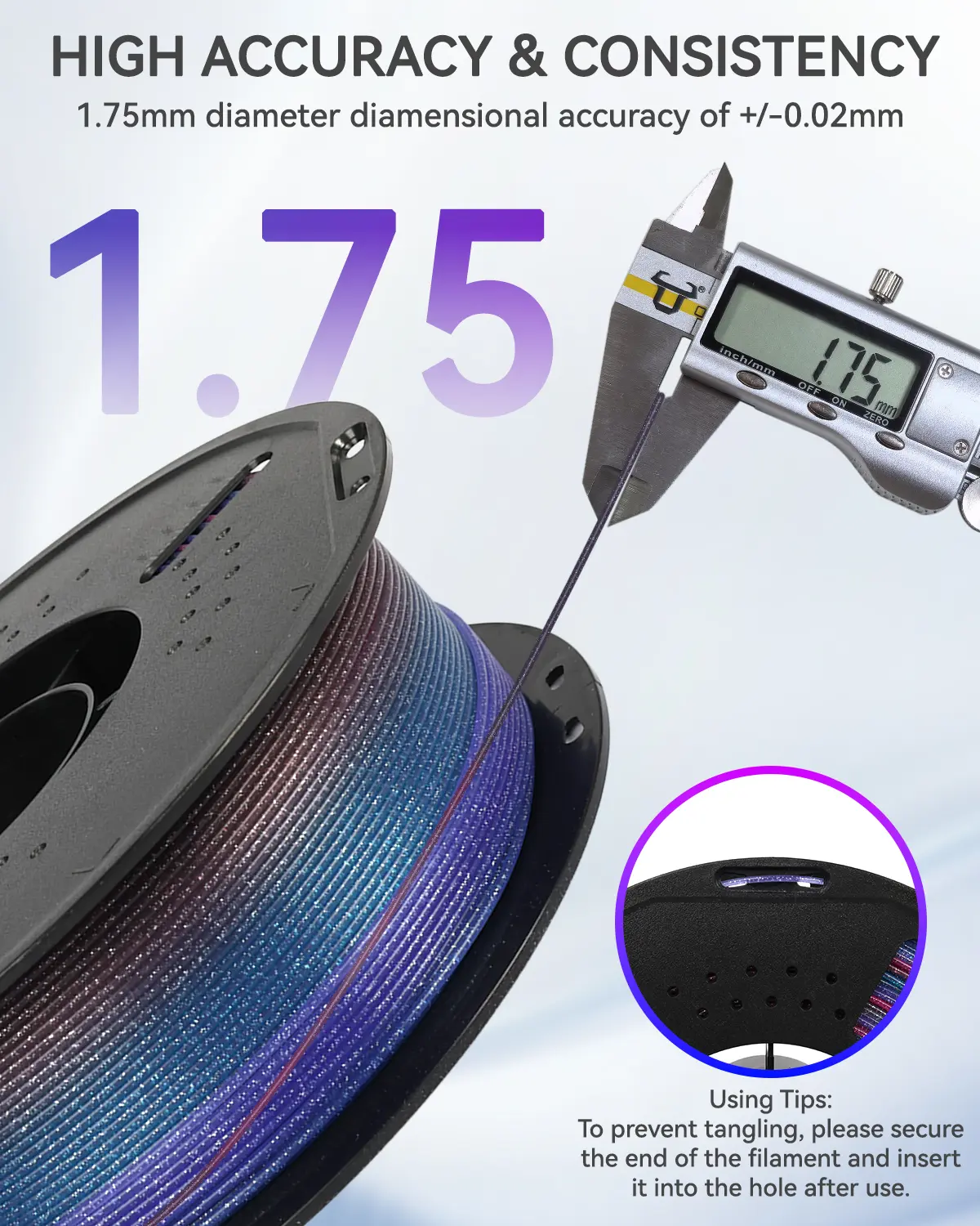 🌈 Color Change Every 8m: This filament features a gradient that changes color every 8 meters, adding a unique touch to your 3D prints. The color transition creates a visually appealing effect, enhancing the appearance of your models.