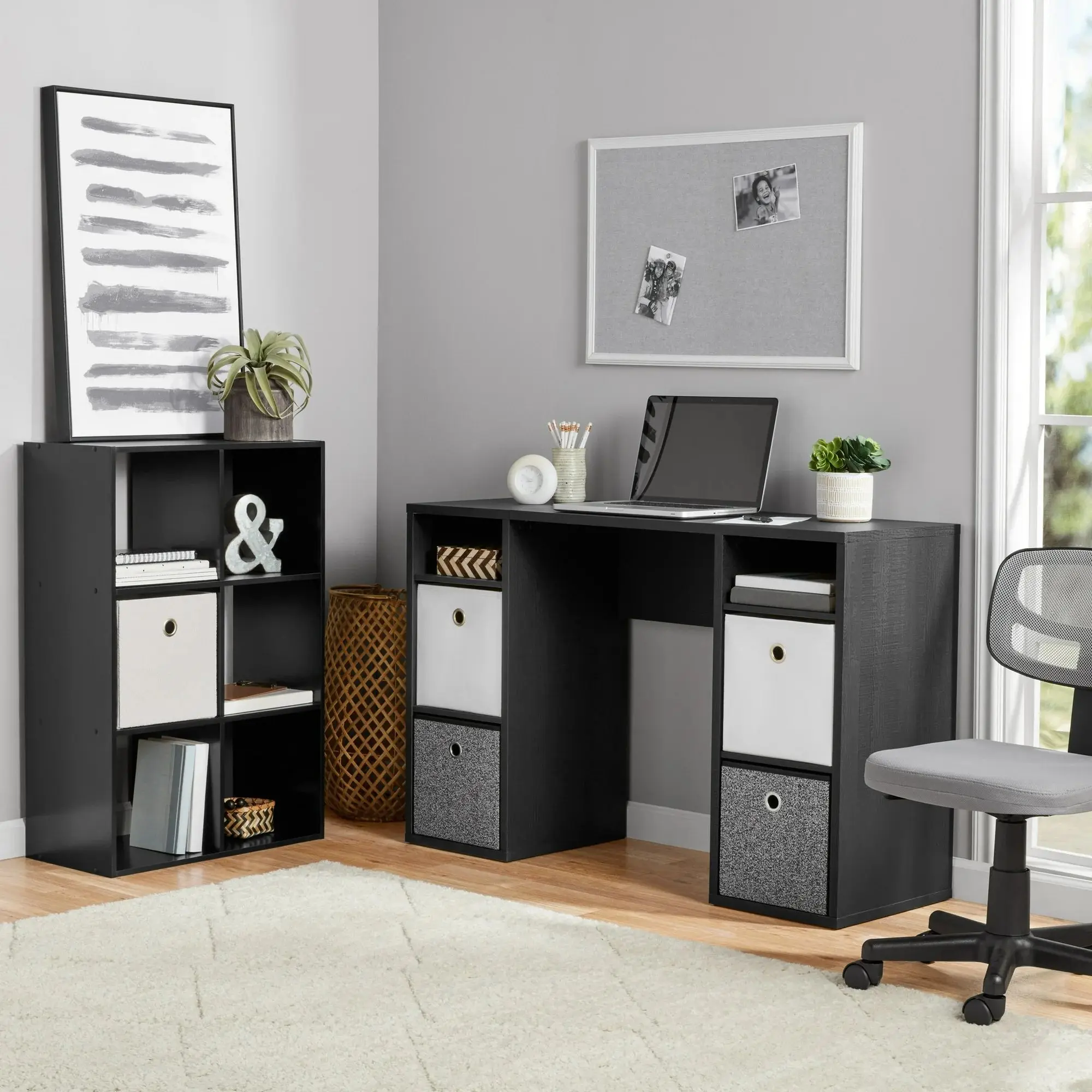 Elevate your workspace with the Mainstays 4-Cube Storage Desk, a stylish and functional solution designed to meet your organization needs.