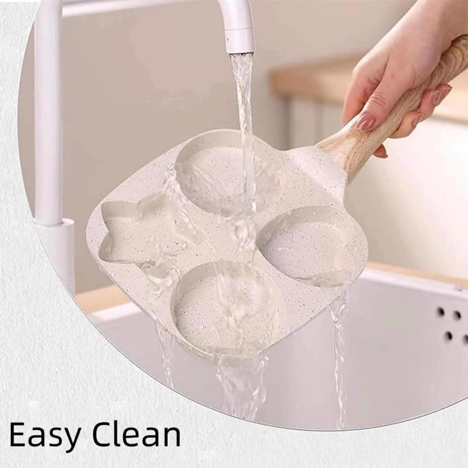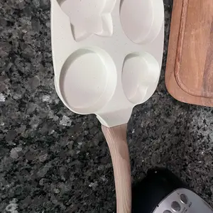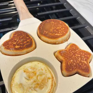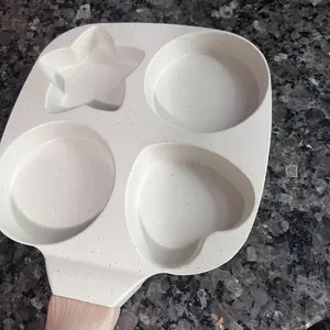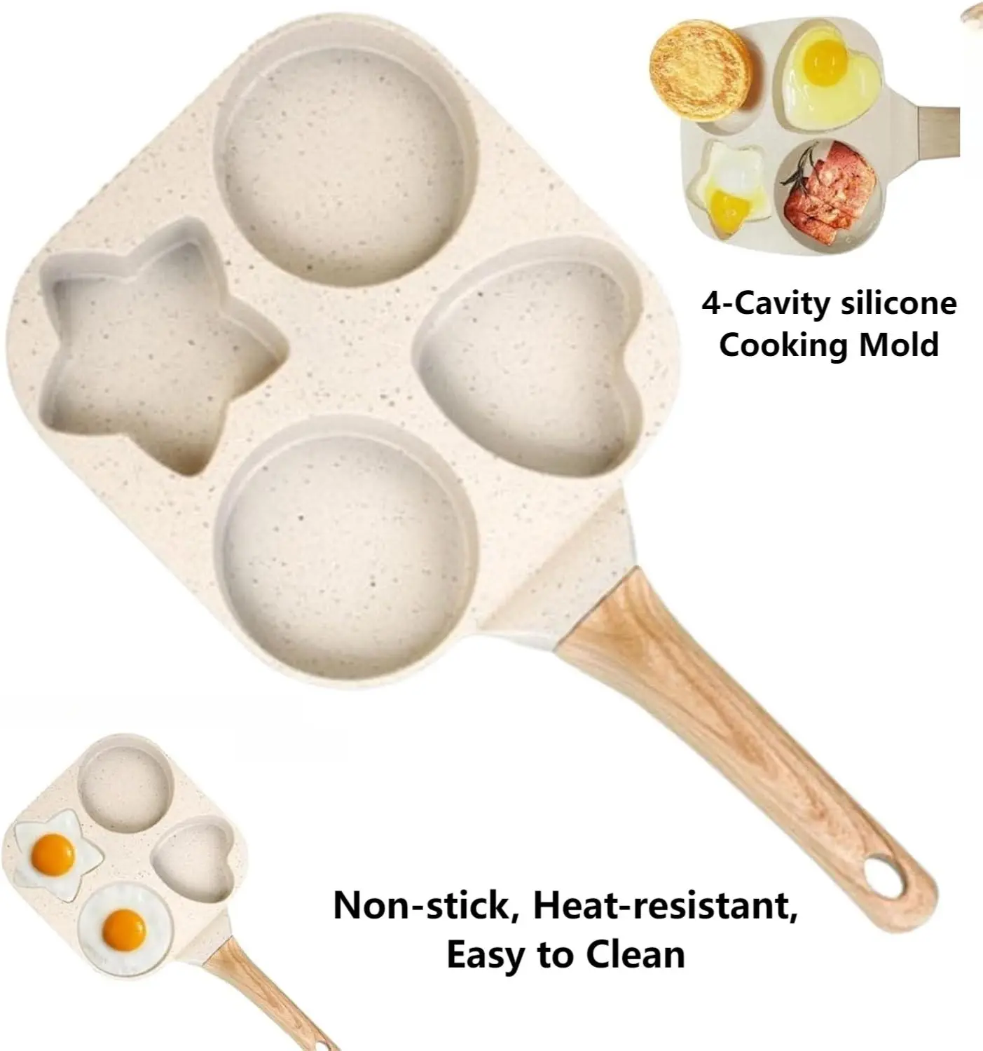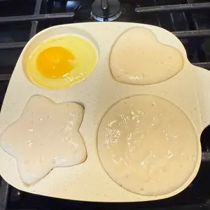 Make breakfast fun and effortless with this Non-Stick 4-Hole Heart-Shaped Pancake & Egg Frying Pan! Crafted with a wooden handle for safe, comfortable grip and granite-style nonstick coating, this small skillet is perfect for cooking eggs, omelets, toast, pancakes, crepes, and sandwiches.
