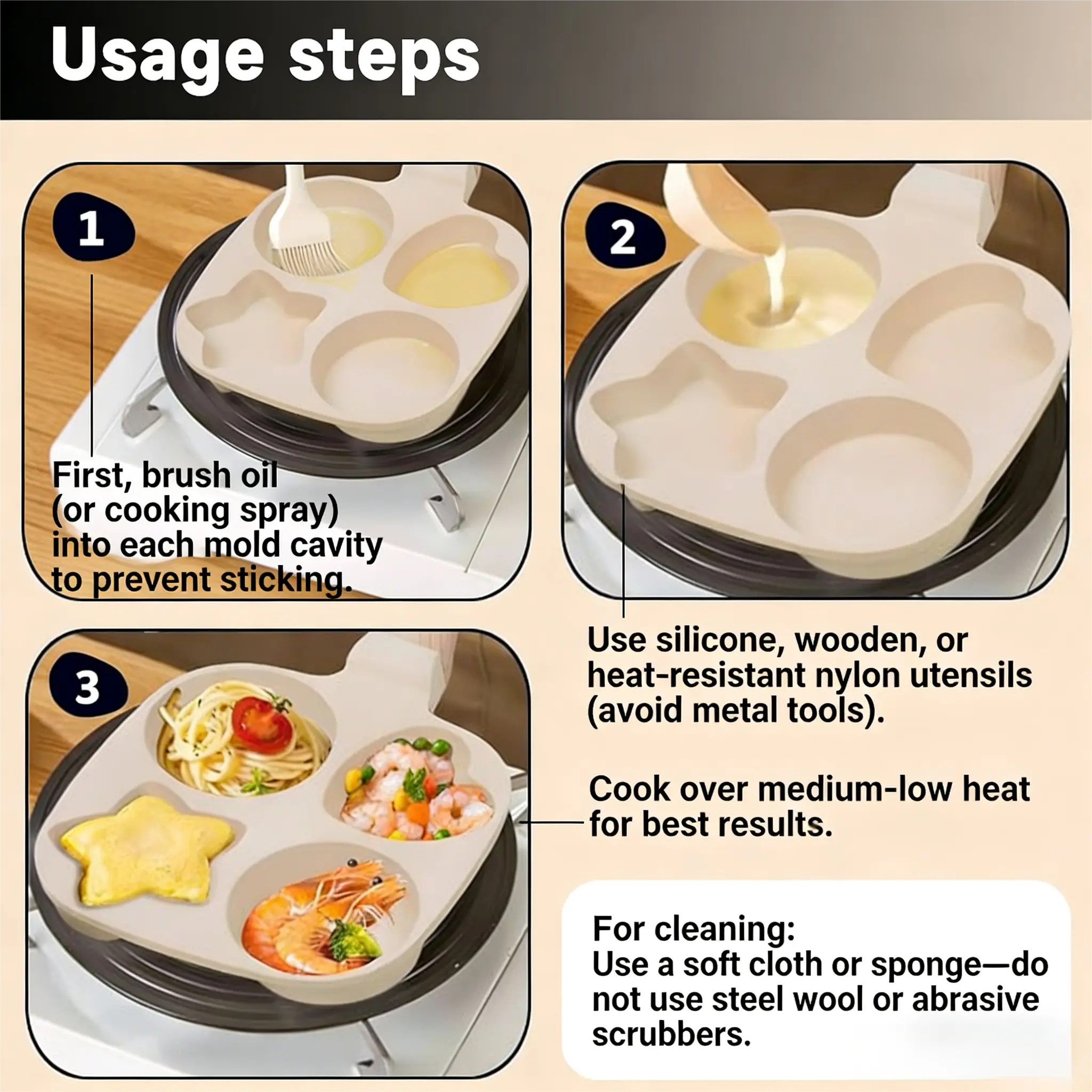 ·Use silicone, wooden, or heat-resistant nylon utensils (avoid metal tools).