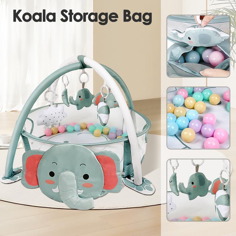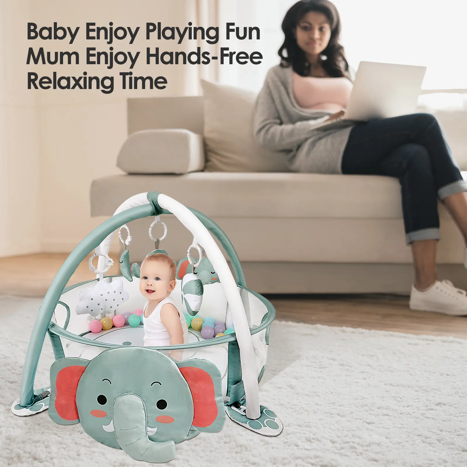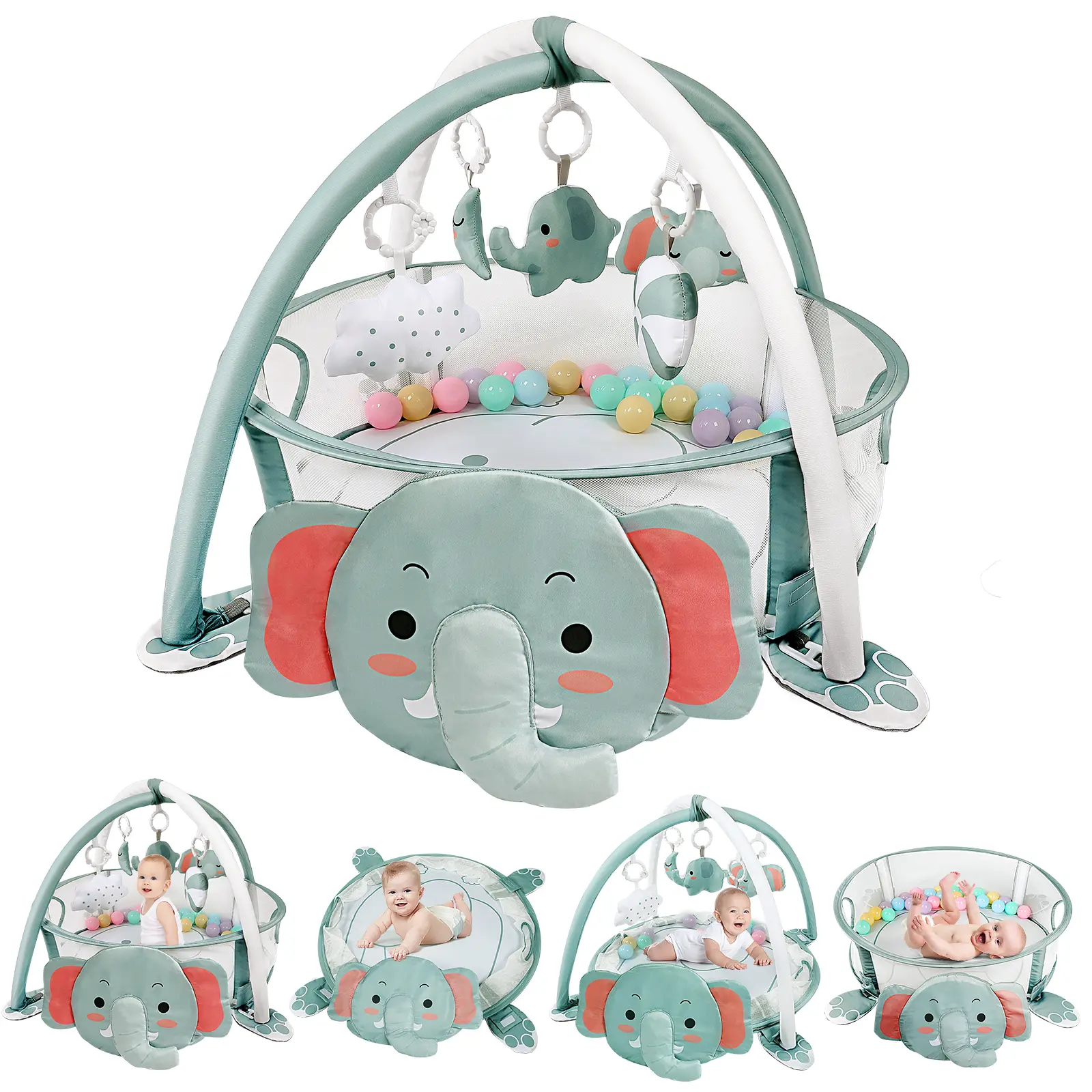 4-in-1 Baby Play Mat Baby Gym,Tummy Time Mat for Floor Activity Gym Ball Pit Including 30 Balls with 5 Infant Learning Sensory Baby Toys for Newborn Toddler Boy & Girl Gifts(Elephant)
