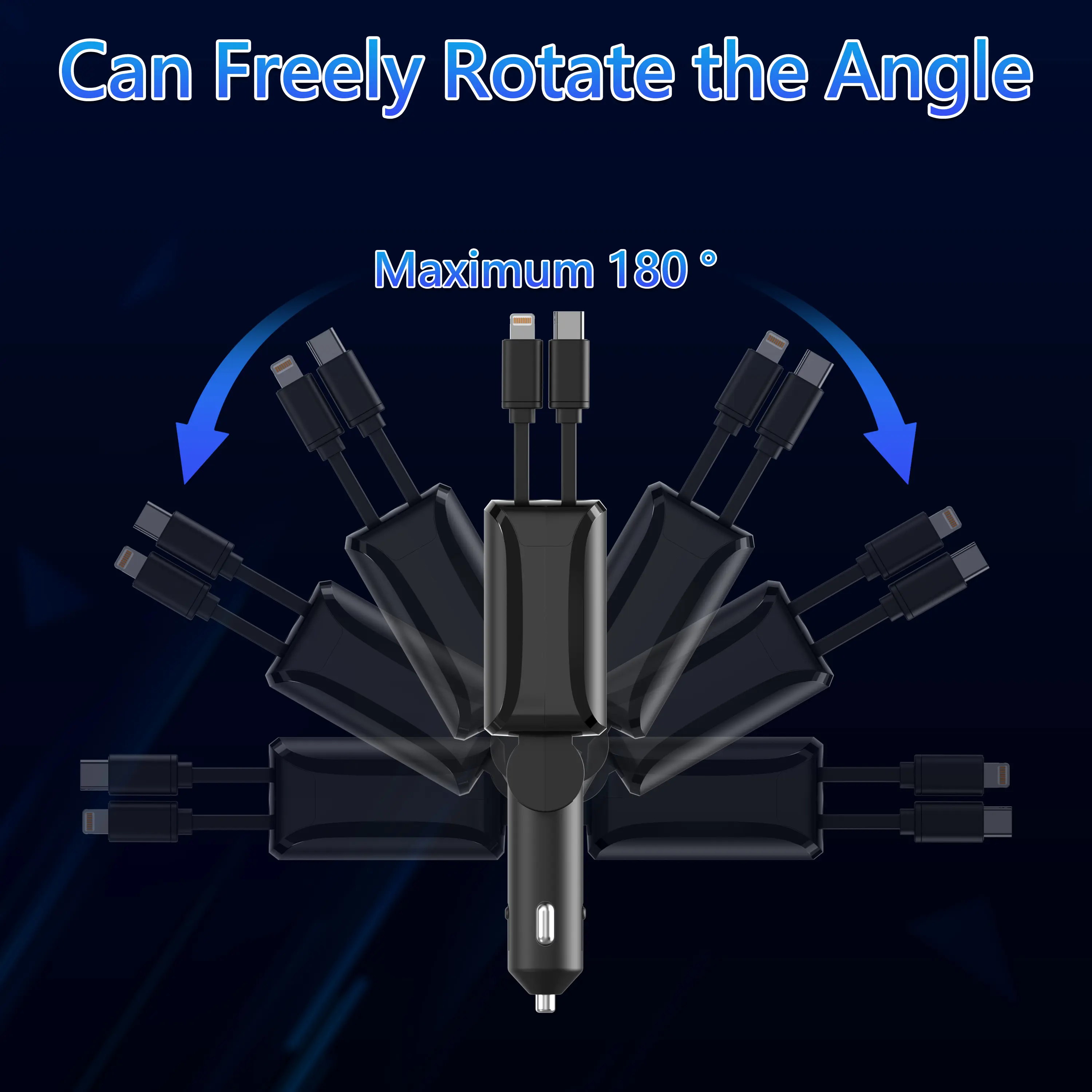 The retractable cables extend up to 80cm, so you get plenty of reach without clutter. Plus, the adapter rotates 180°, letting you adjust it for easy access and comfortable use while driving. It’s designed to stay firmly connected, even on bumpy roads, so no more worrying about loose plugs.