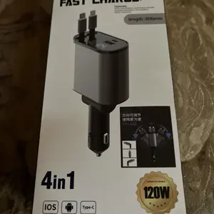 Inside the box, you'll find the charger with built-in retractable Type-C and Lightning cables, plus dual USB ports ready to power your gadgets. Whether you're on a road trip or your daily commute, this all-in-one charger simplifies your car charging setup.