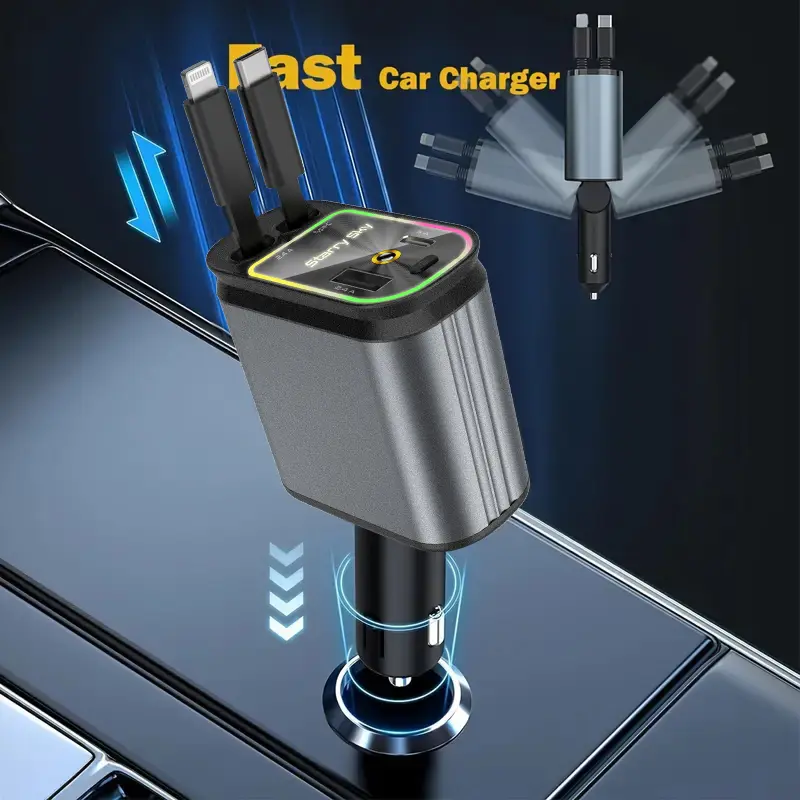 This car charger provides fast charging capabilities, ensuring your devices are powered up quickly. The 4-in-1 design allows you to charge multiple devices simultaneously. Ideal for those on the go, it keeps your gadgets running smoothly without compromising on convenience.