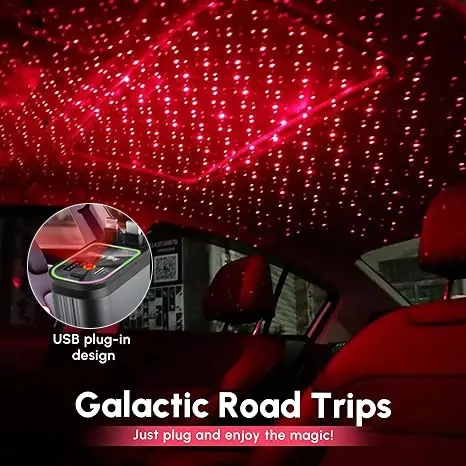 Elevate your car's interior with this innovative Starlight Roof Projector. It features a 31-inch retractable cable, compatible with Type-C and iOS devices. The charger offers red and blue lights, enhancing your driving experience. Perfect for travel, it's a must-have accessory for modern vehicles.