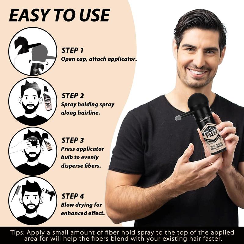4-in-1 Hair & Beard Styling Set with Hair Fiber & Pump Dispenser & Application Card – Enhancements Barber Spray Volumizing Water Proof (Black)