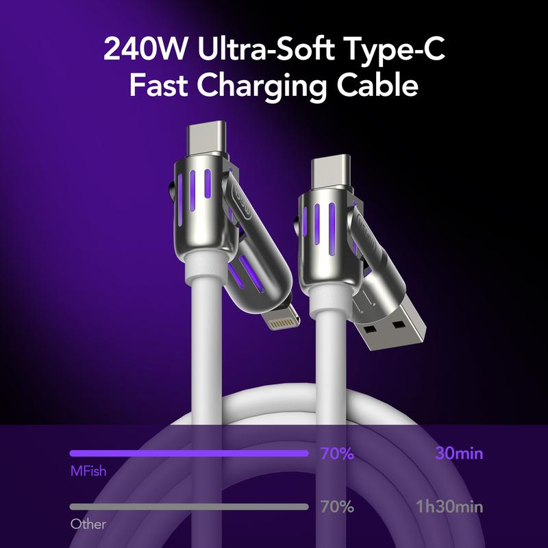 MFish 4-in-1 Multi USB Charging Cable – 240W Fast Charging & Data Sync for iPhone 16/15, iPad Pro, Samsung, and Laptops