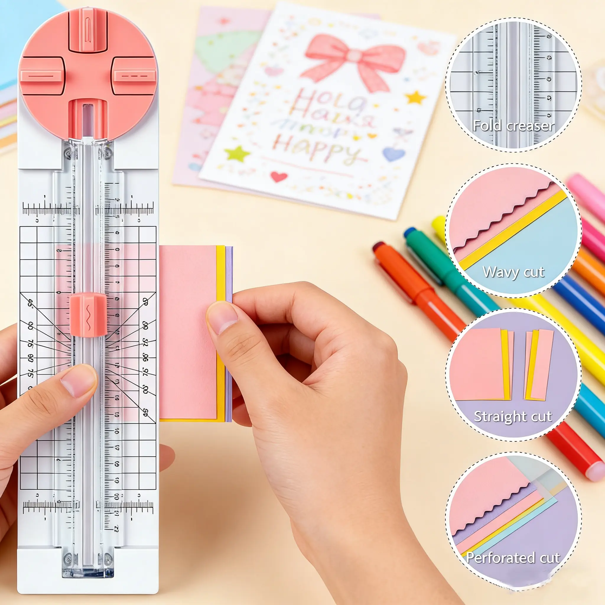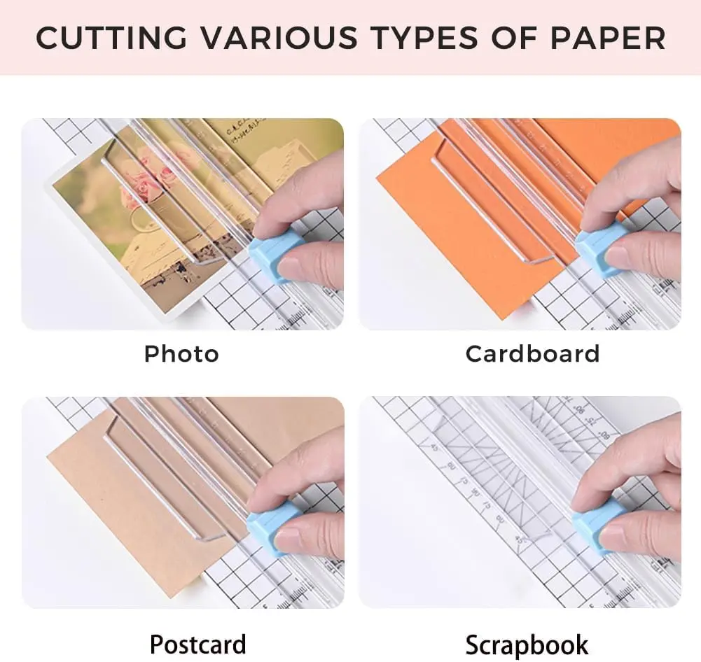 ·[Safe and Durable]: The mini blade on the paper cutter is so sharp and durable that the cutting process is smooth. And the blade works only when you press it, the blade hidden design protects the user, especially children.