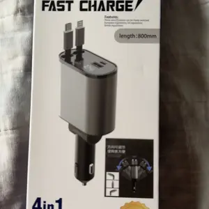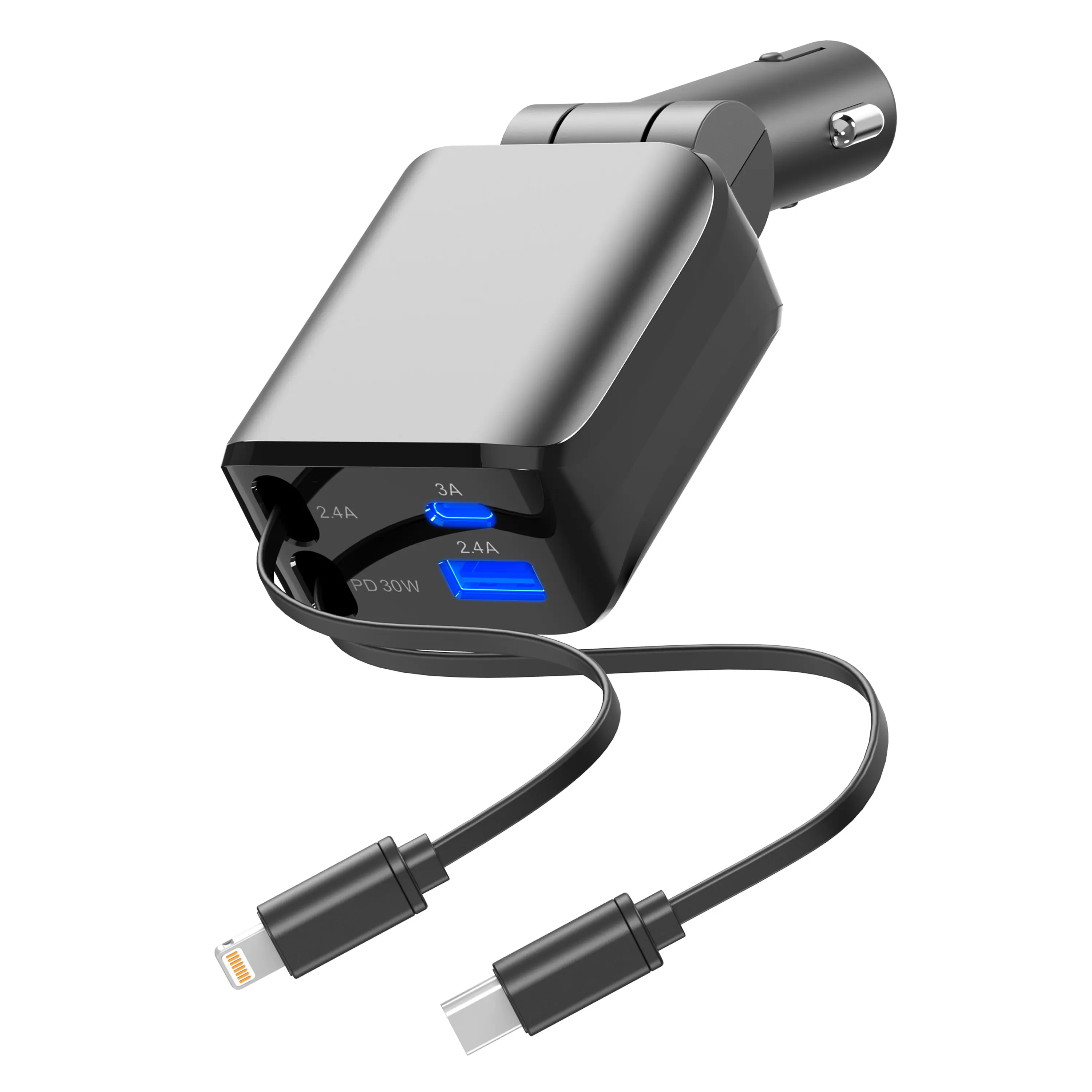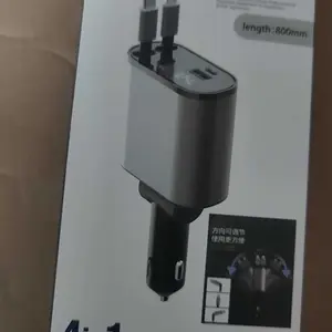 【4-in-1 Charging Solution】Our fast car charger adapter facilitates simultaneous fast charging of up to 4 devices. It includes 2 retractable cables (Type-C and Lightning) with 7 adjustable length settings, as well as 1 USB-A and 1 USB-C port.