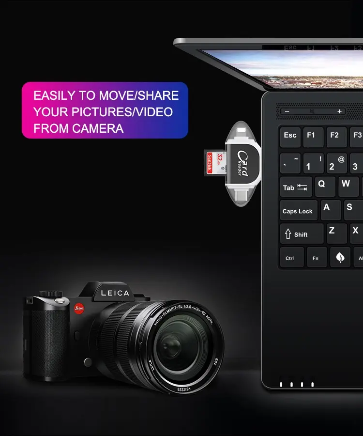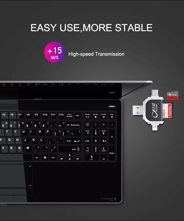 【Management】: High speed two-way transmission, The SD card reader suitable for data transmission between Phone/Android/Computer and other devices, Providing intelligent file viewing and management functions, Browsing documents, Pictures, Watching videos, Listening to Music, Etc. USB 3.0 enables data transfer rates of up to 5Gbps for faster sync times, backward compatible with USB 2.0 / 1.1.