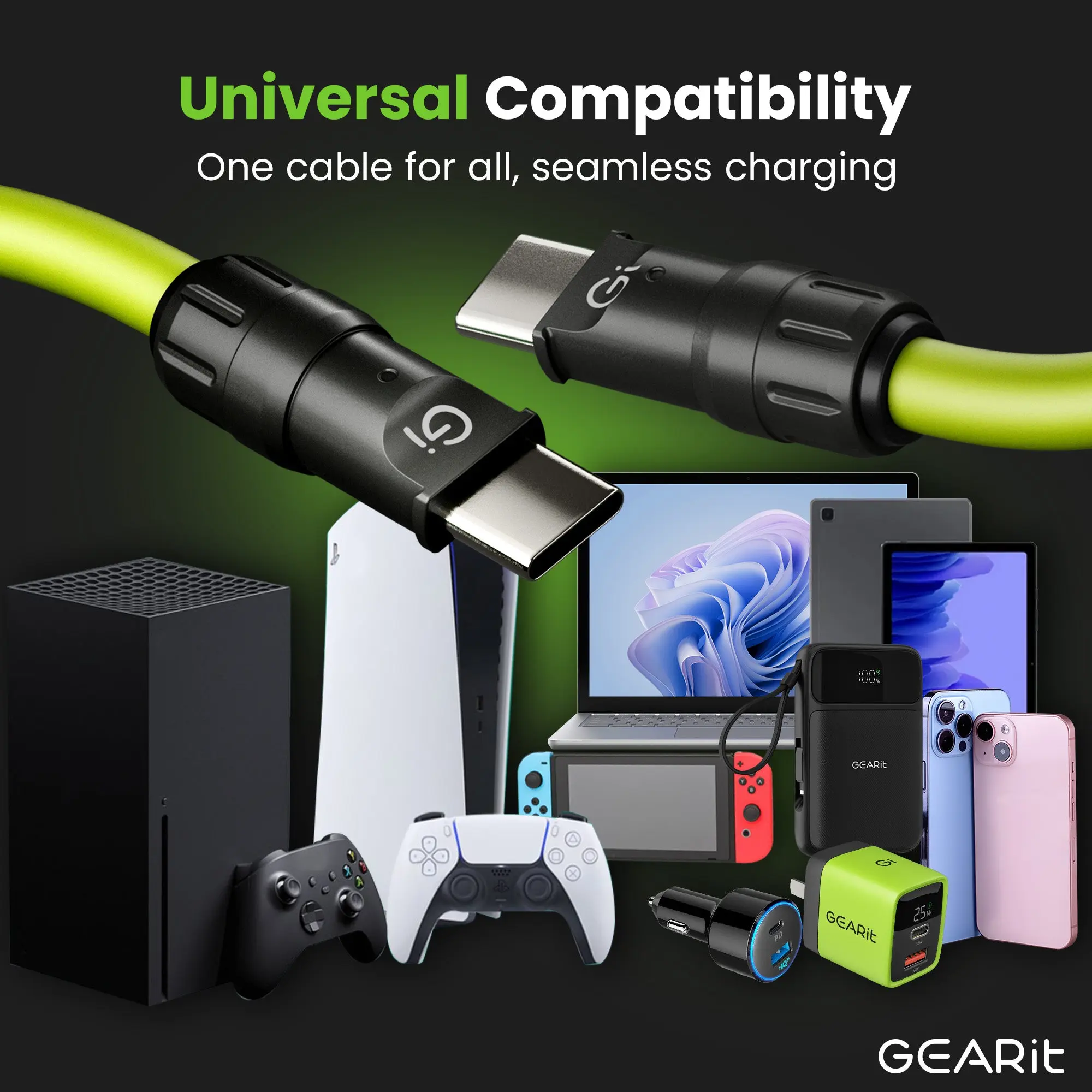 Β·Power Without Limits - Experience the blazing-fast charging of our 100w 4 in 1 charging cable with intelligent IC chip technology that automatically optimizes current and voltage for your devices while providing advanced safety protection