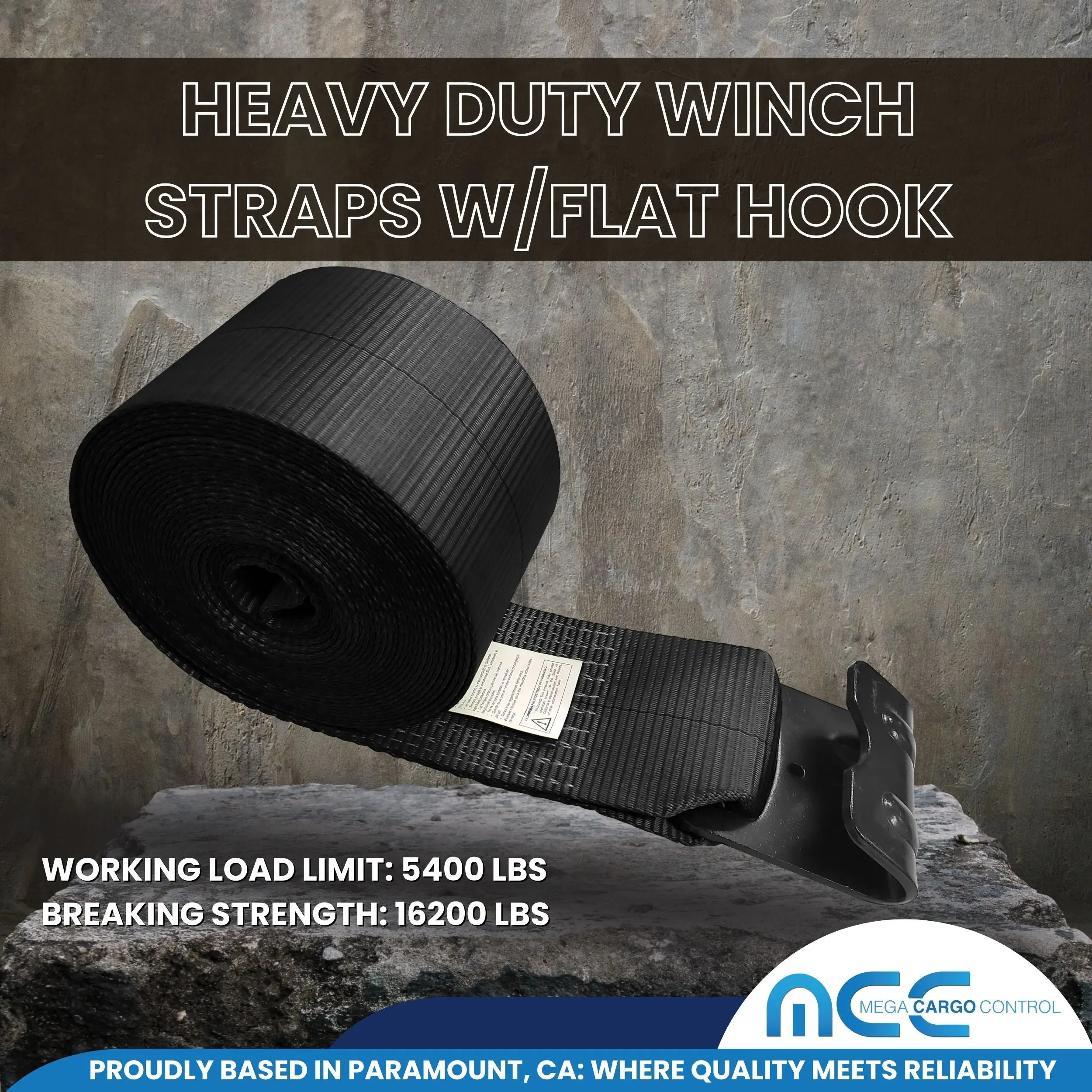 4" x 40', 50, 60' USA Custom Winch Straps w/ Chain Extensions