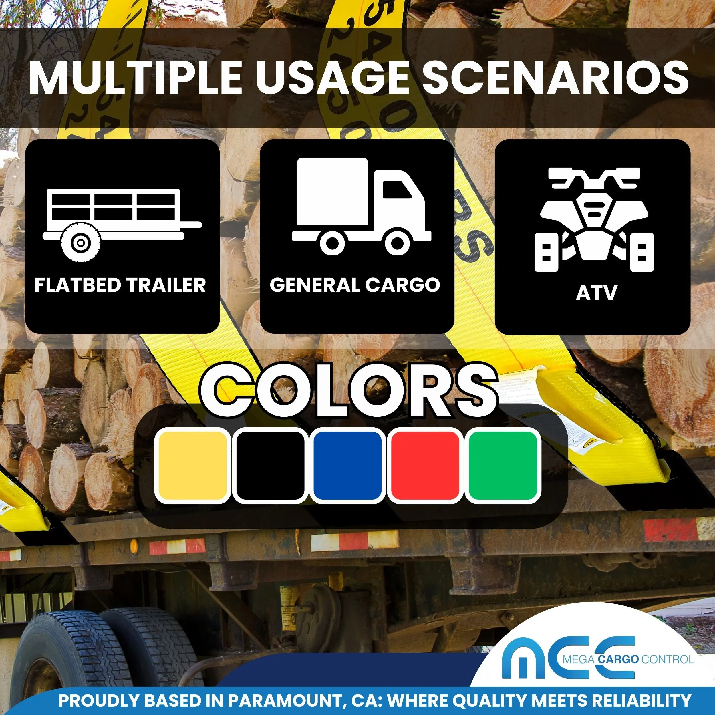 USA 2" x 8' Car Tie Down Strap w/ Ratchet Buckle & Flat Snap Hook