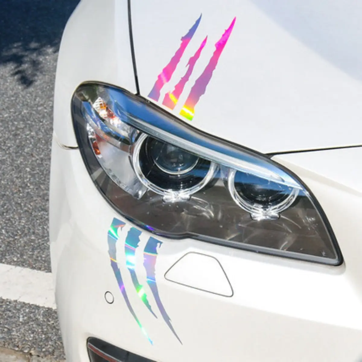 5. 4-pack of claw mark pattern car headlight stickers, size: 15.7 x 4.7 inches, material: PET reflective material.