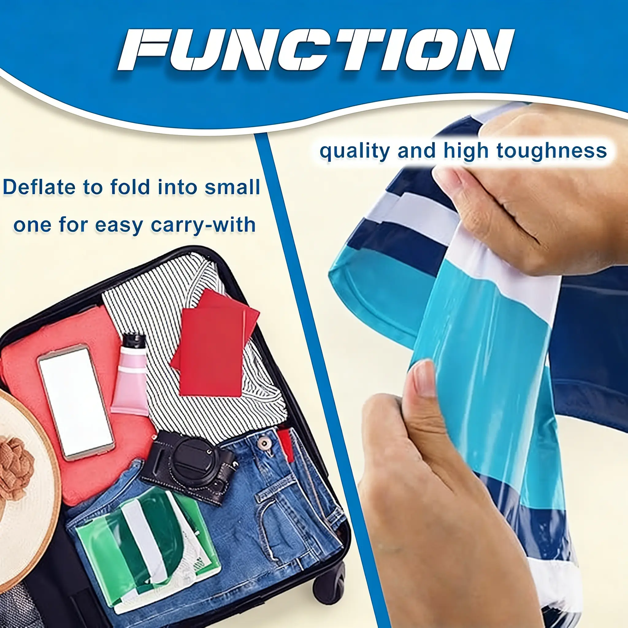 Supports fast inflation with hand pumps or electric air pumps and features excellent air-tight performance. The inflated size is 50'' × 27.7''. Easy to fold, carry and store, perfect for travel, outdoor activities and pool parties.