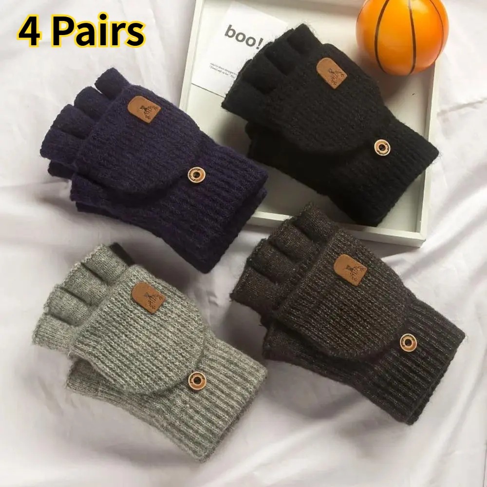 4-Pair Knitted Fingerless Gloves Winter Thicken Warm Touch Screen Gloves for Men Women Gloves Warm Half Finger Student Gloves