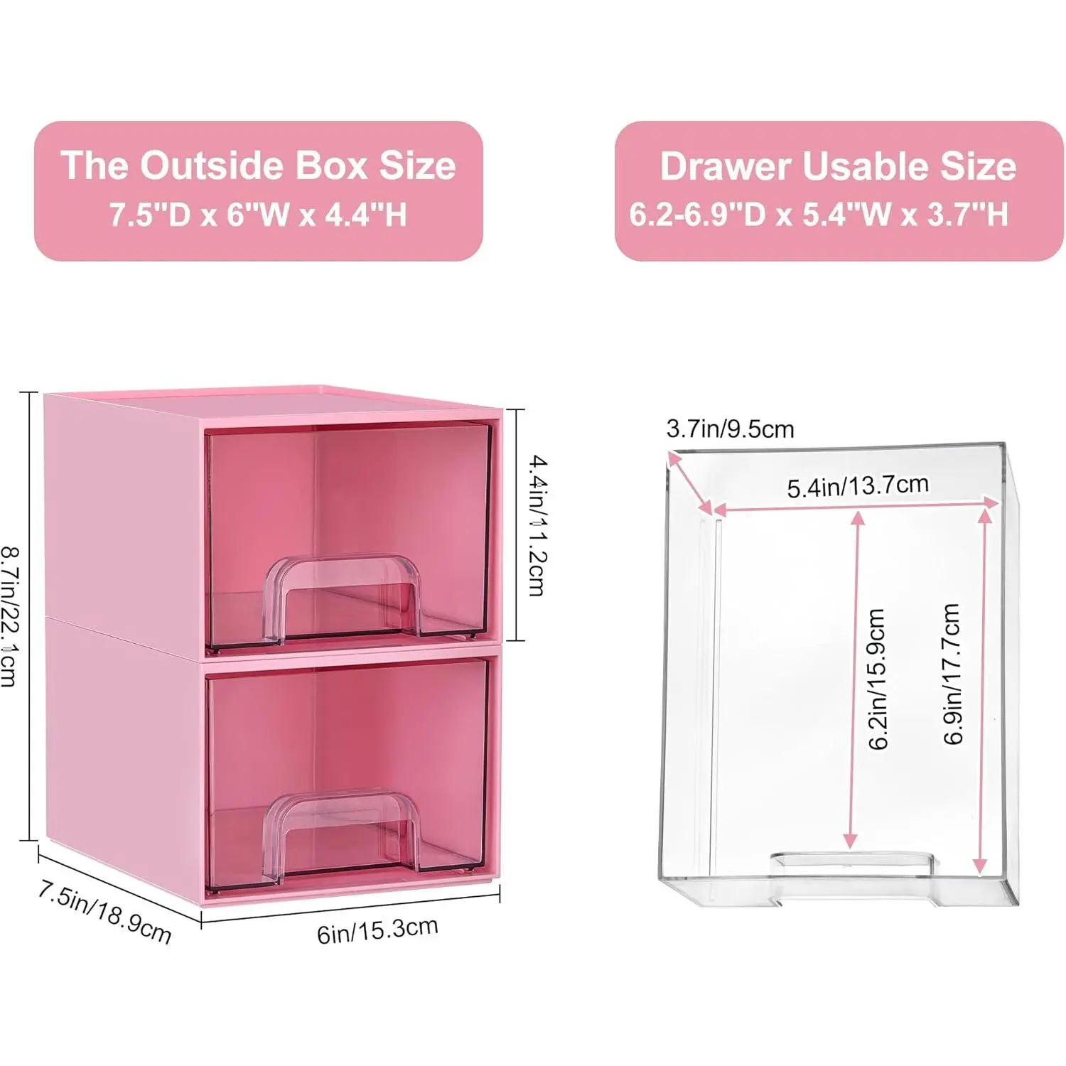 4Pack Small Stackable Storage Drawers, Bathroom Makeup Organizer,Plastic Storage Bins For Vanity, Undersink, Kitchen Cabinet, Pantry, Home Organization(Pink)